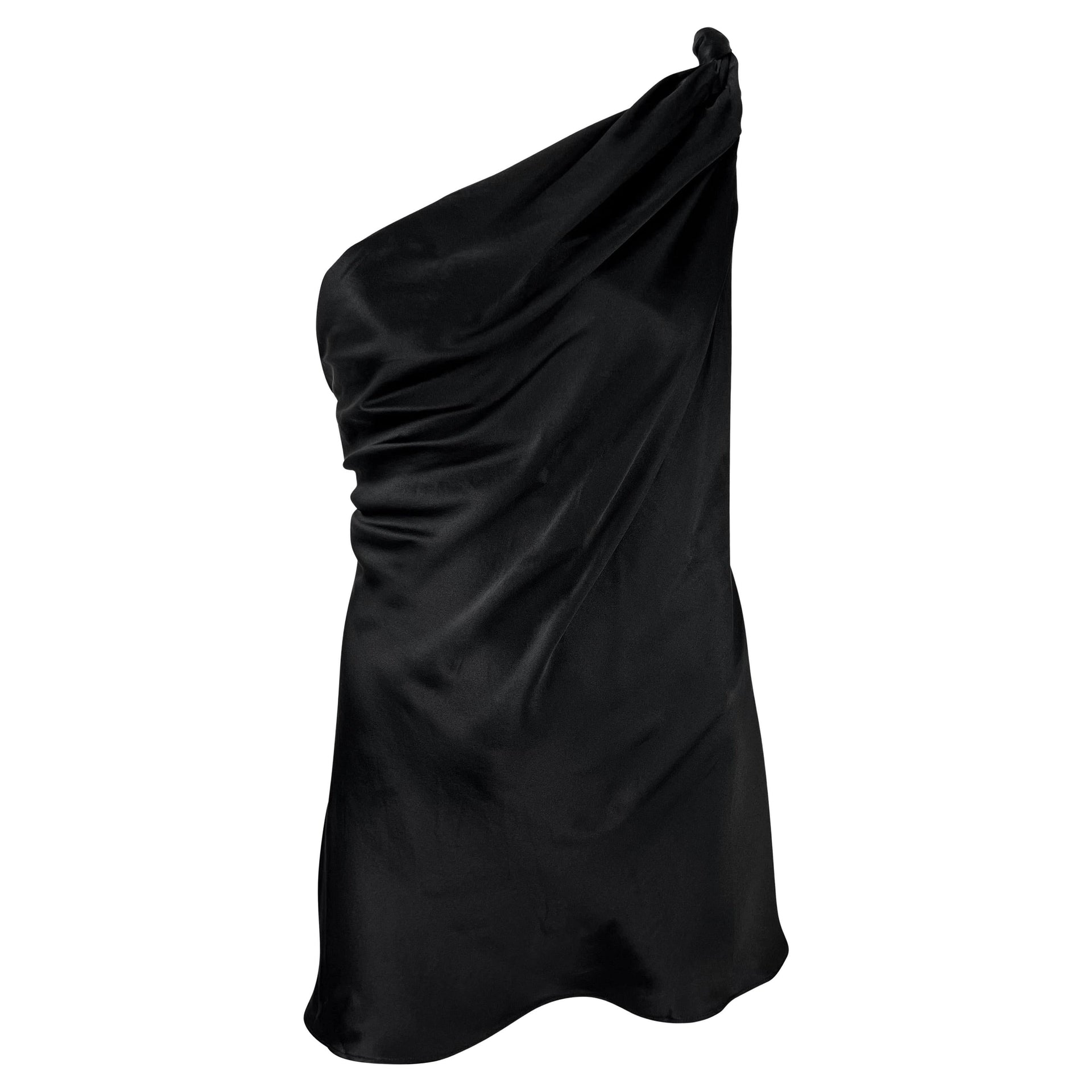 NWT F/W 2002 Dolce & Gabbana Black Silk Satin Asymmetric Super Mini Dress