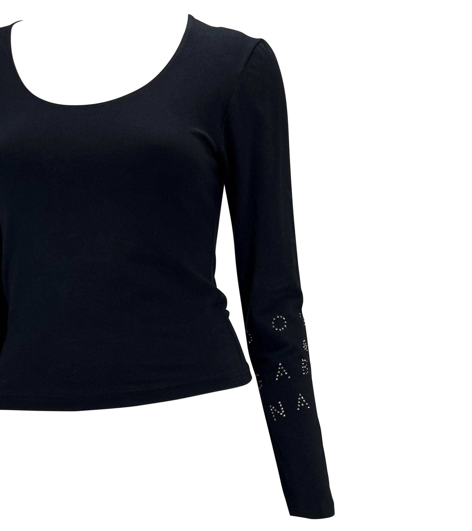 2000s Dolce & Gabbana Rhinestone Logo Black Long Sleeve Shirt Y2K
