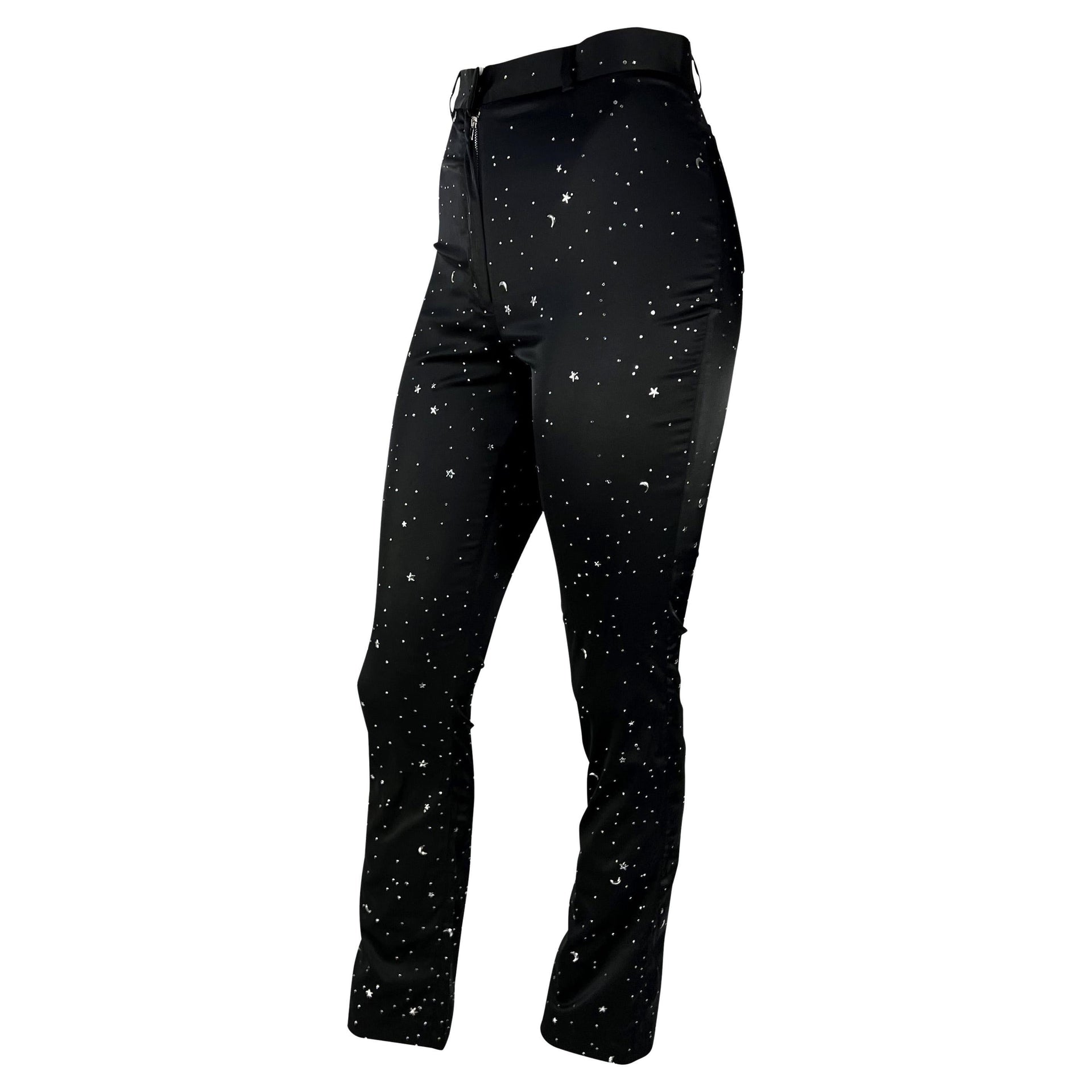 Early 1990s Dolce & Gabbana Black Satin Stretch Rhinestone Constellation Pants