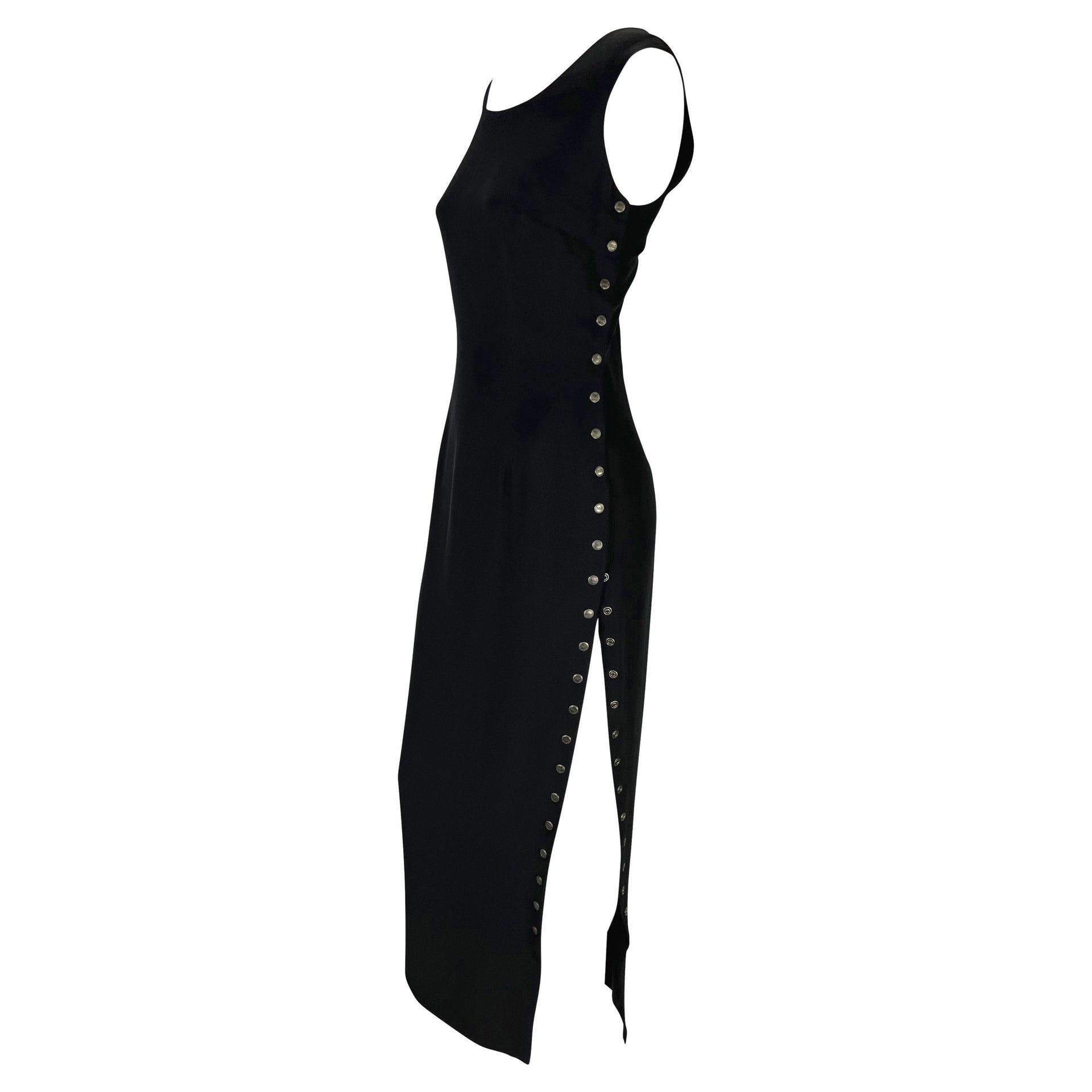 S/S 1993 Dolce & Gabbana Runway Logo Snap Black Bodycon Pin-Up Dress