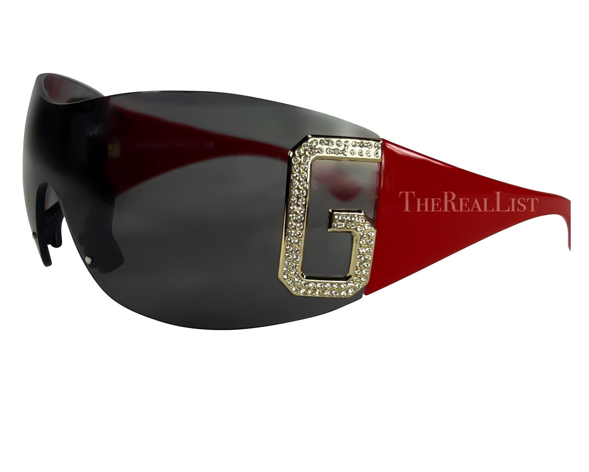 Early 2000s Dolce & Gabbana Red Shield Rimless Rhinestone Sunglasses