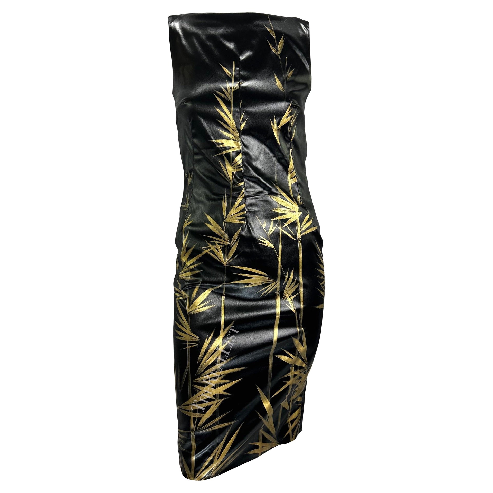 S/S 1999 Dolce & Gabbana Black 'Wet Look' Hand-Painted Gold Bamboo Bodycon DressVendor: Dolce & Gabbana