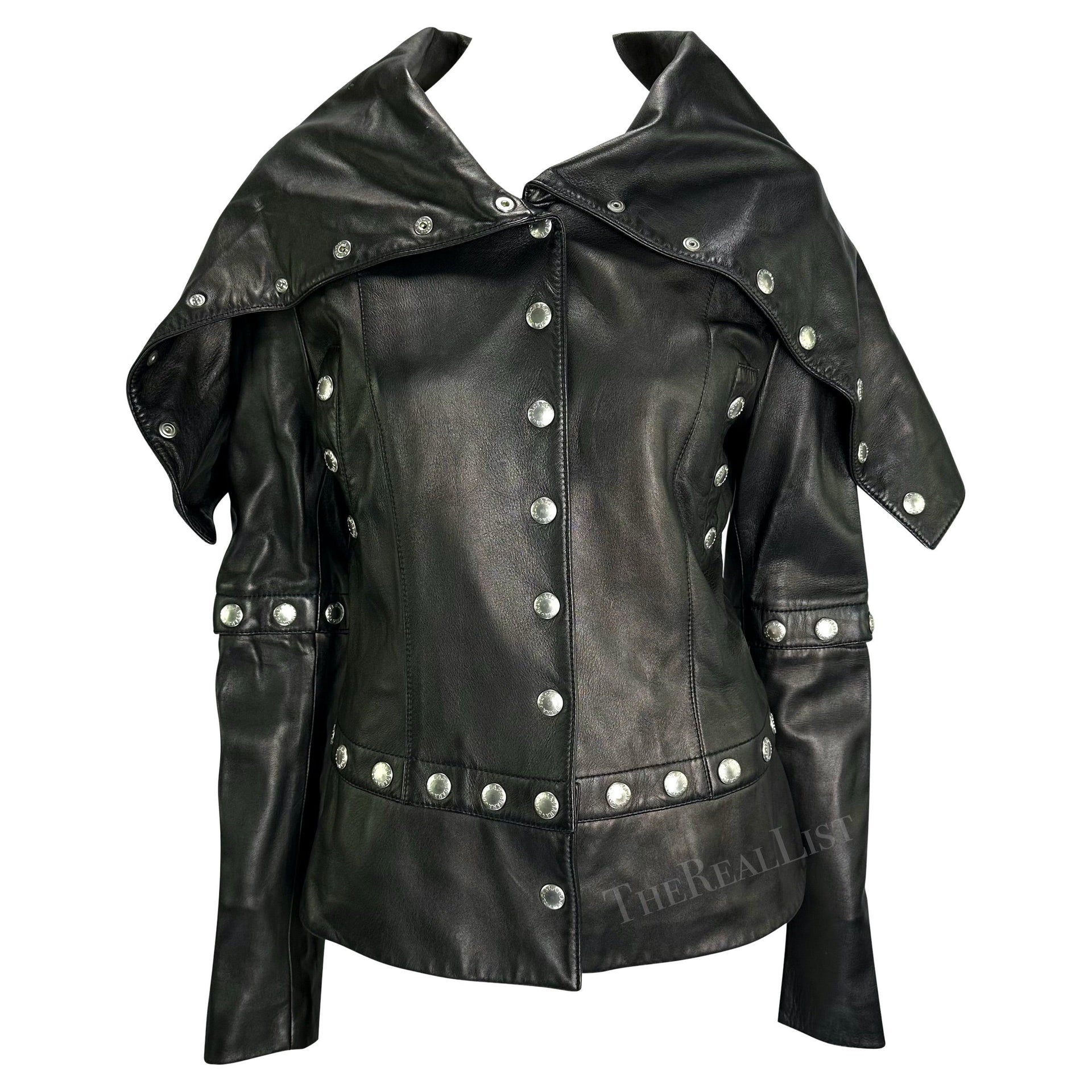 F/W 2003 Dolce & Gabbana Convertible Black Leather Logo Snap Jacket