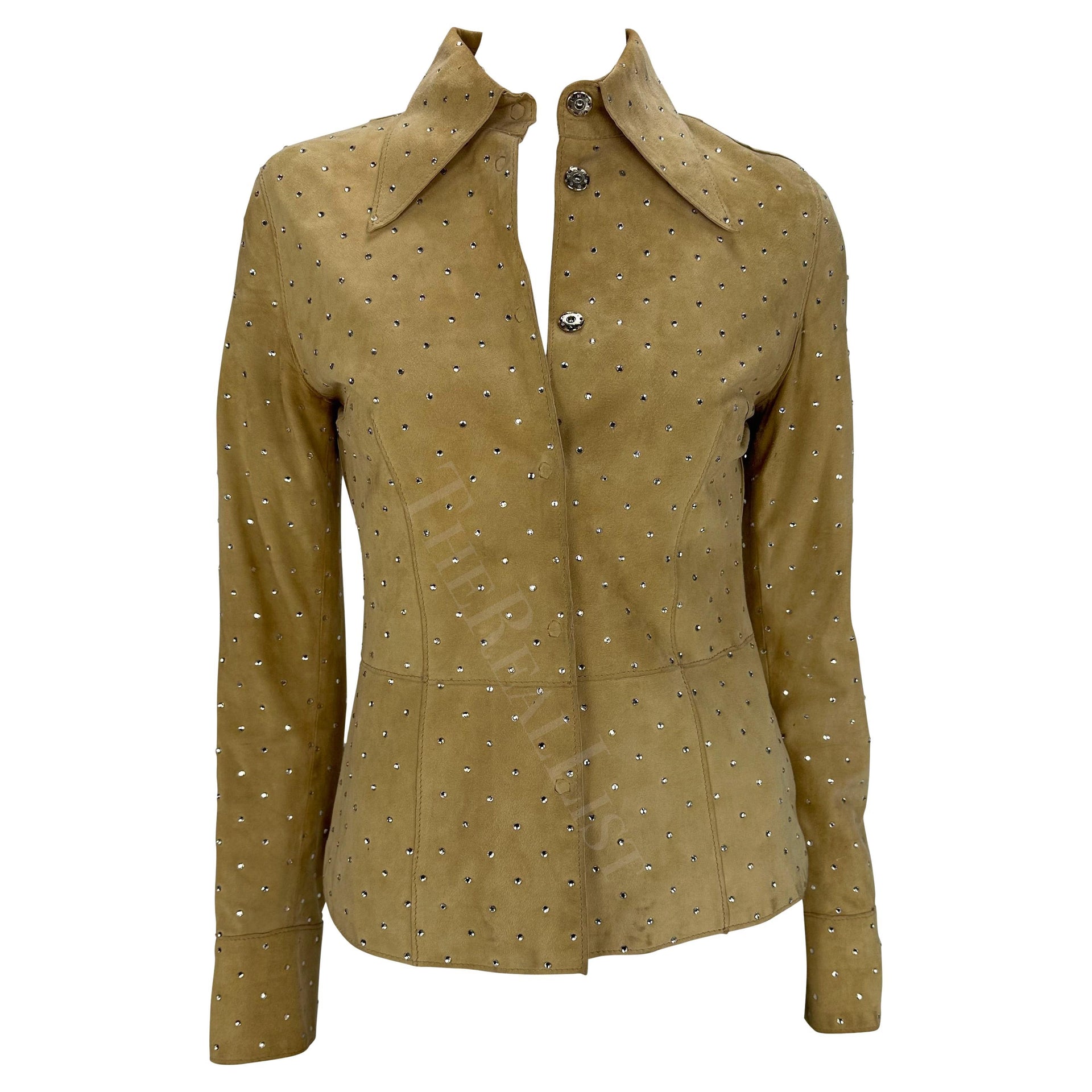 F/W 2000 Dolce & Gabbana Tan Suede Rhinestone Accented Shirt Jacket