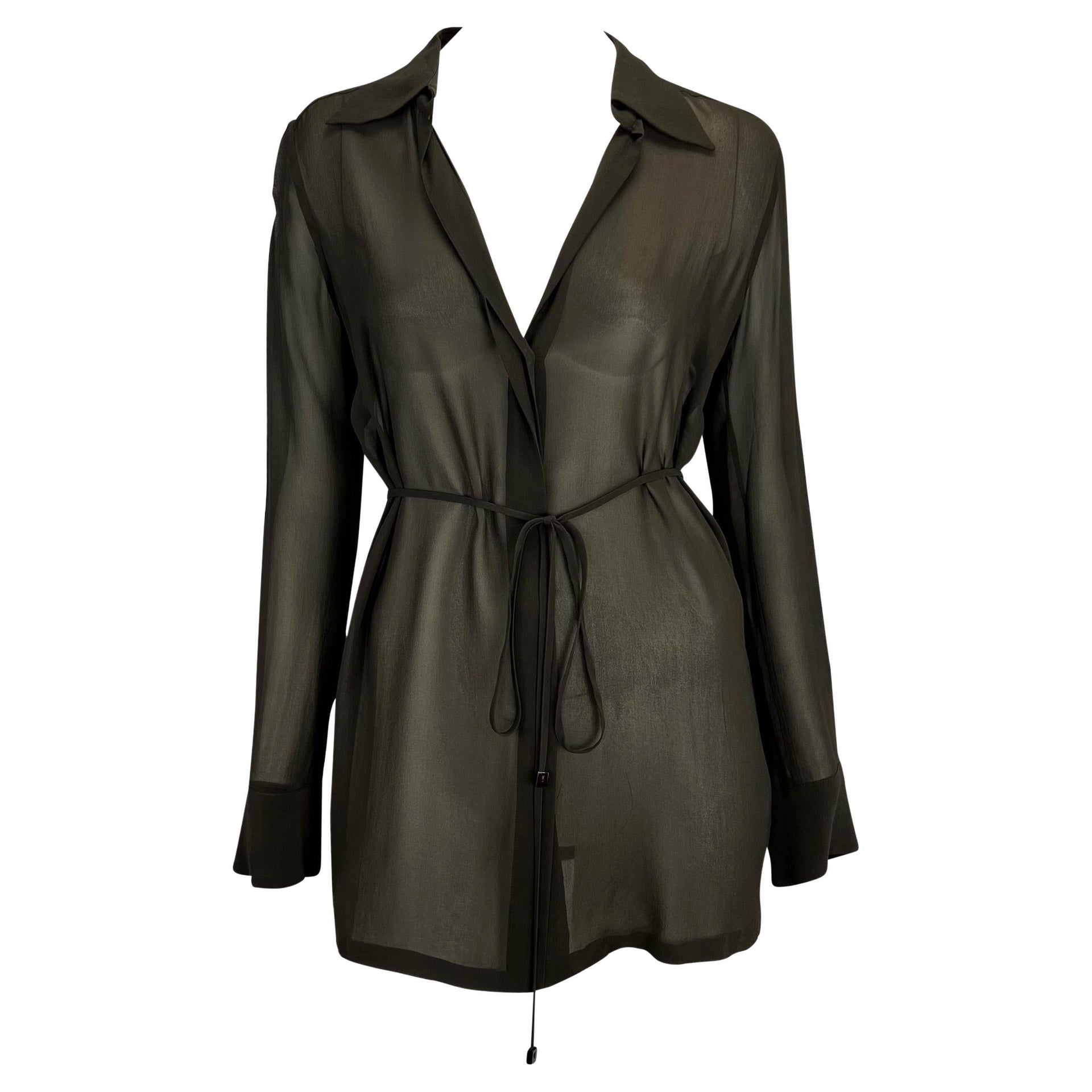S/S 1997 Gucci by Tom Ford Brown Sheer Button Up Belted Oversized Tunic TopVendor: Gucci