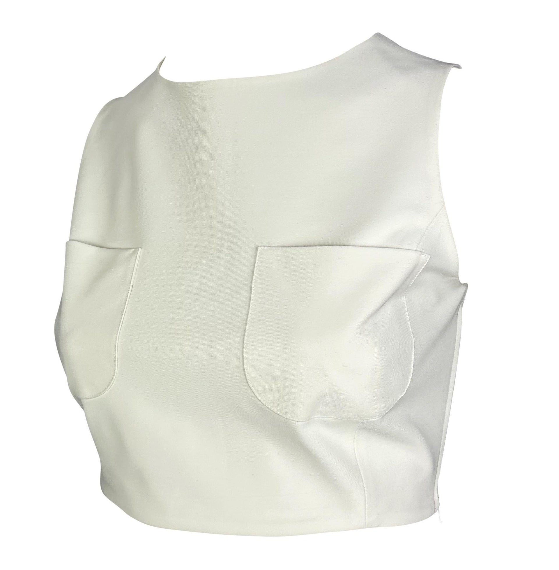 S/S 1996 Gucci by Tom Ford White Silk Crop Top Two Front Pockets