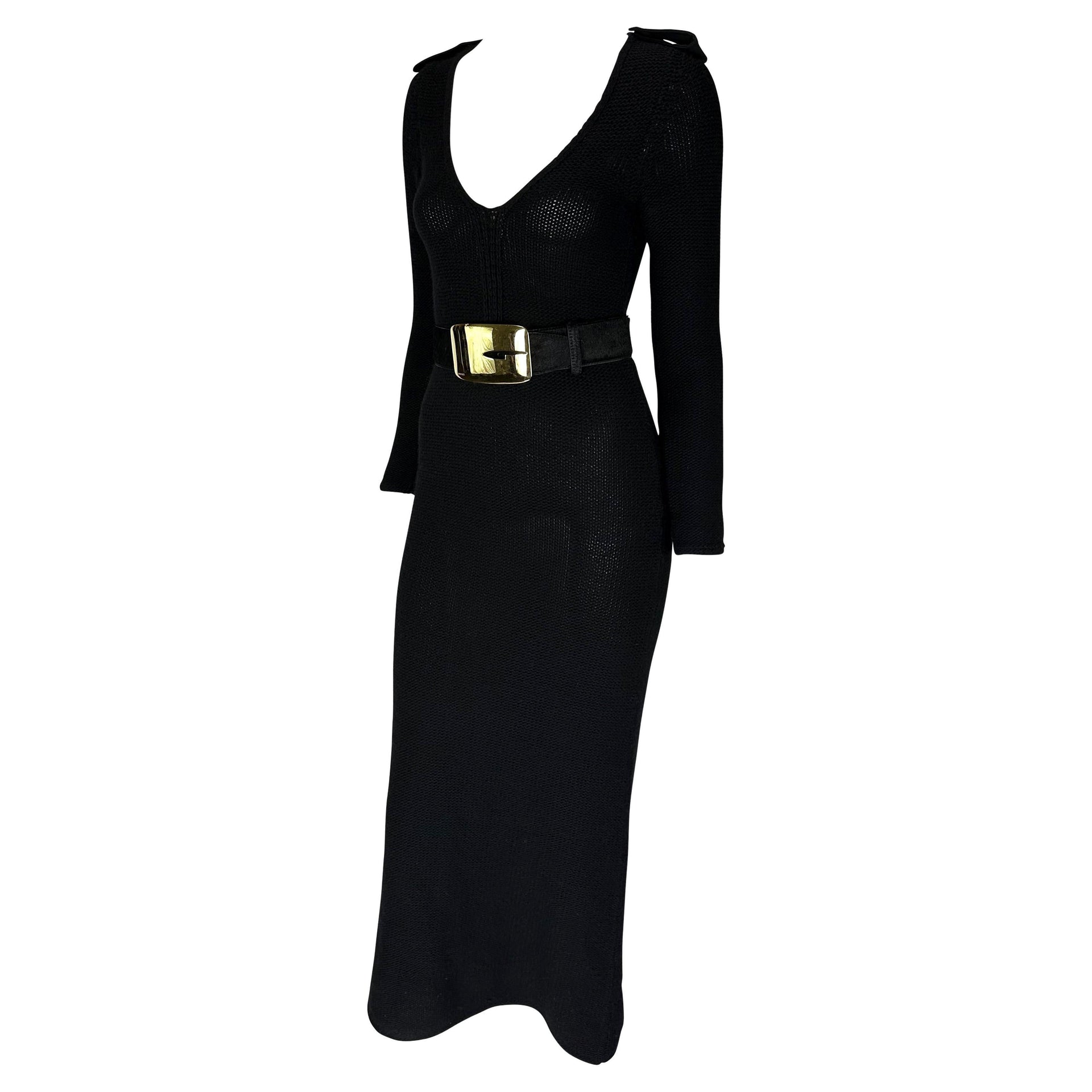 F/W 1996 Gucci by Tom Ford Runway Ad Cashmere Plunging G Buckle Epaulet Dress