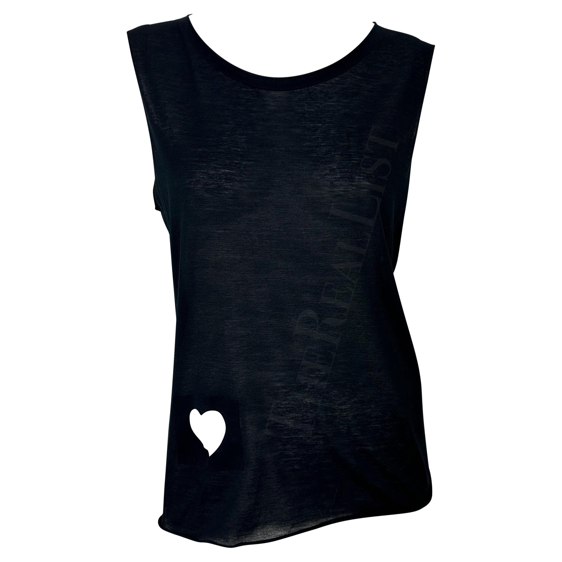S/S 2002 Gucci by Tom Ford Runway Black Heart Cutout Sheer Stretch Cotton Shirt