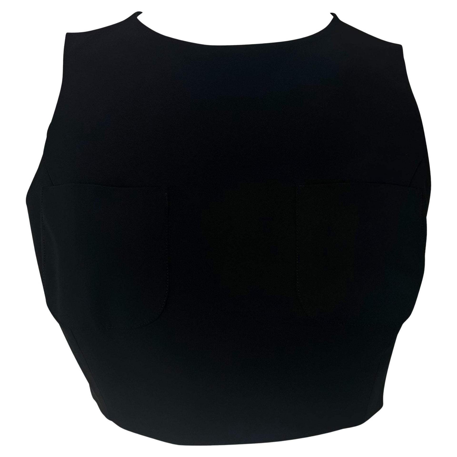 S/S 1996 Gucci by Tom Ford Black Silk Crop Top Two Front Pockets