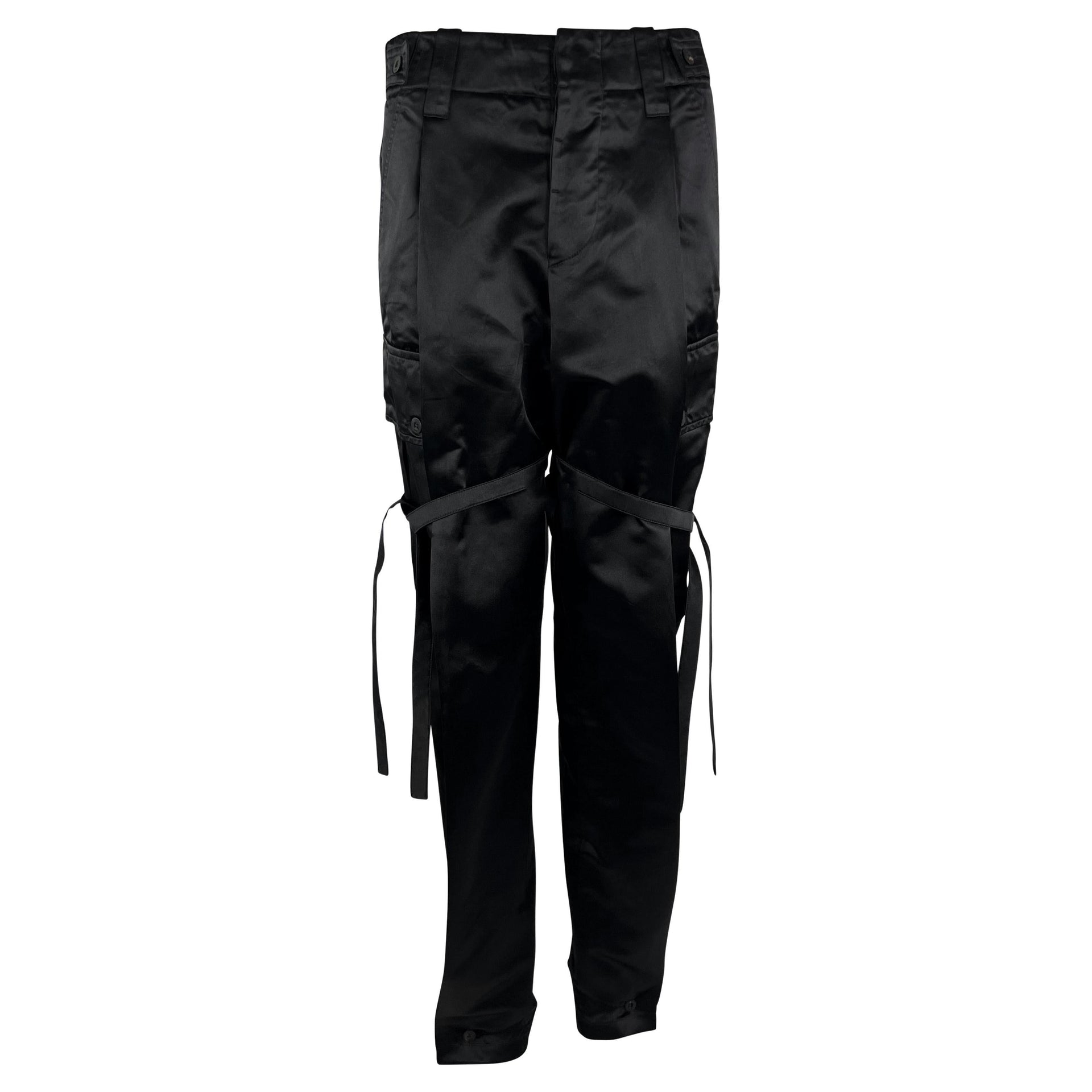 S/S 2001 Gucci by Tom Ford Runway Black Satin Oversized Cargo Wide Leg PantsVendor: Gucci