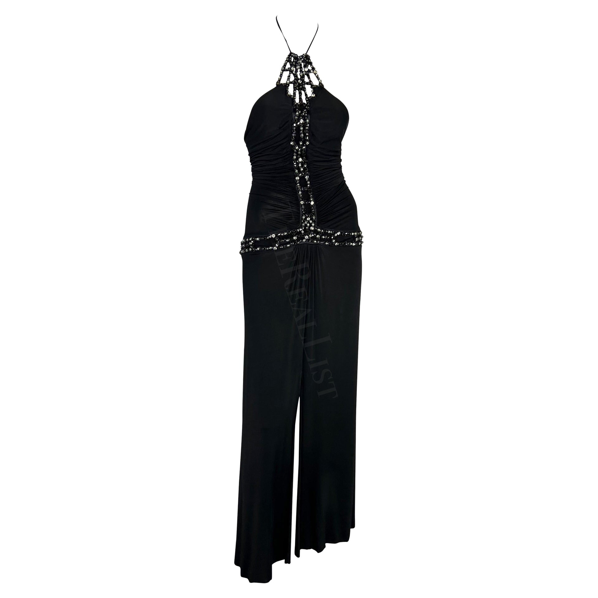 S/S 2005 Roberto Cavalli Black Rhinestone Sheer Bodycon Stretch Halter GownVendor: Roberto Cavalli