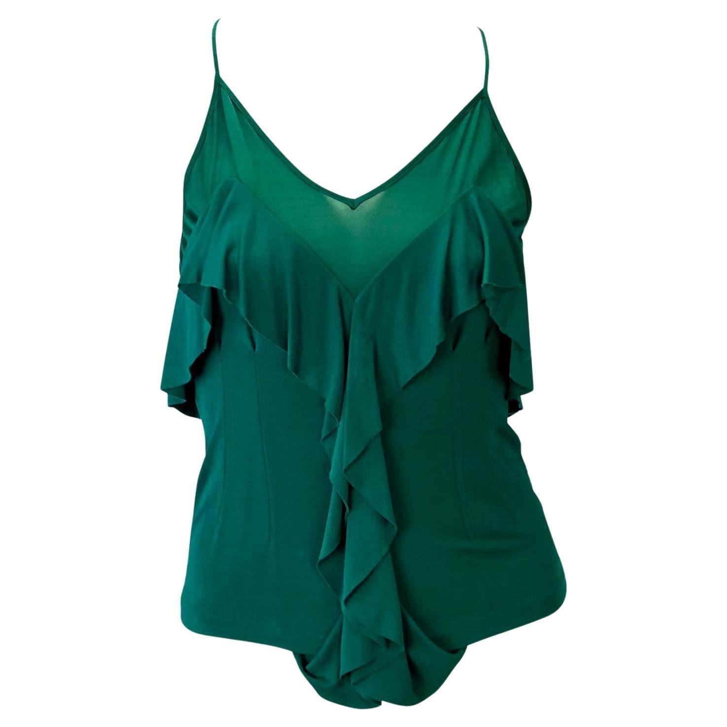 F/W 2003 Yves Saint Laurent by Tom Ford Emerald Green Silk Ruffle Tank Top