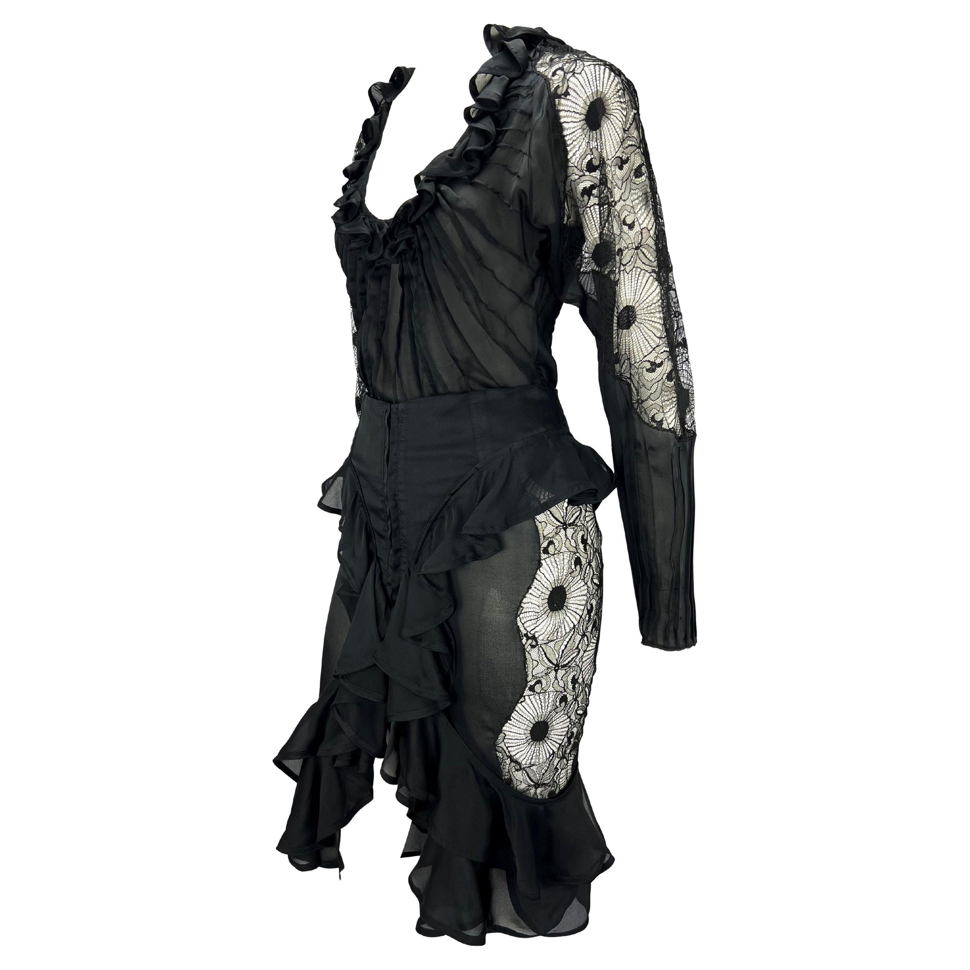 F/W 2003 Yves Saint Laurent by Tom Ford Sheer Lace Satin Ruffled Top Skirt Set