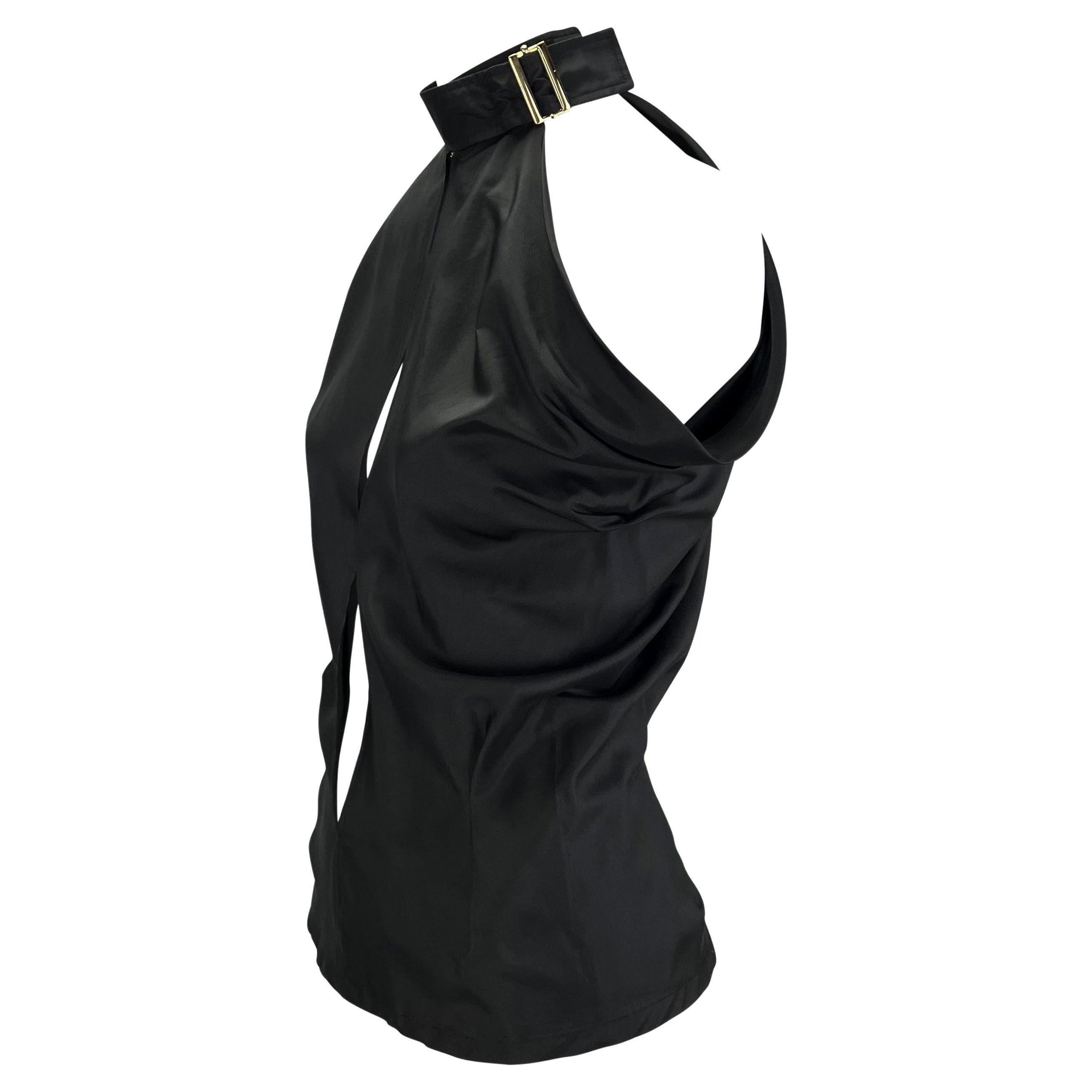 S/S 2001 Yves Saint Laurent by Tom Ford Plunge Black Silk Buckle Sleeveless Top