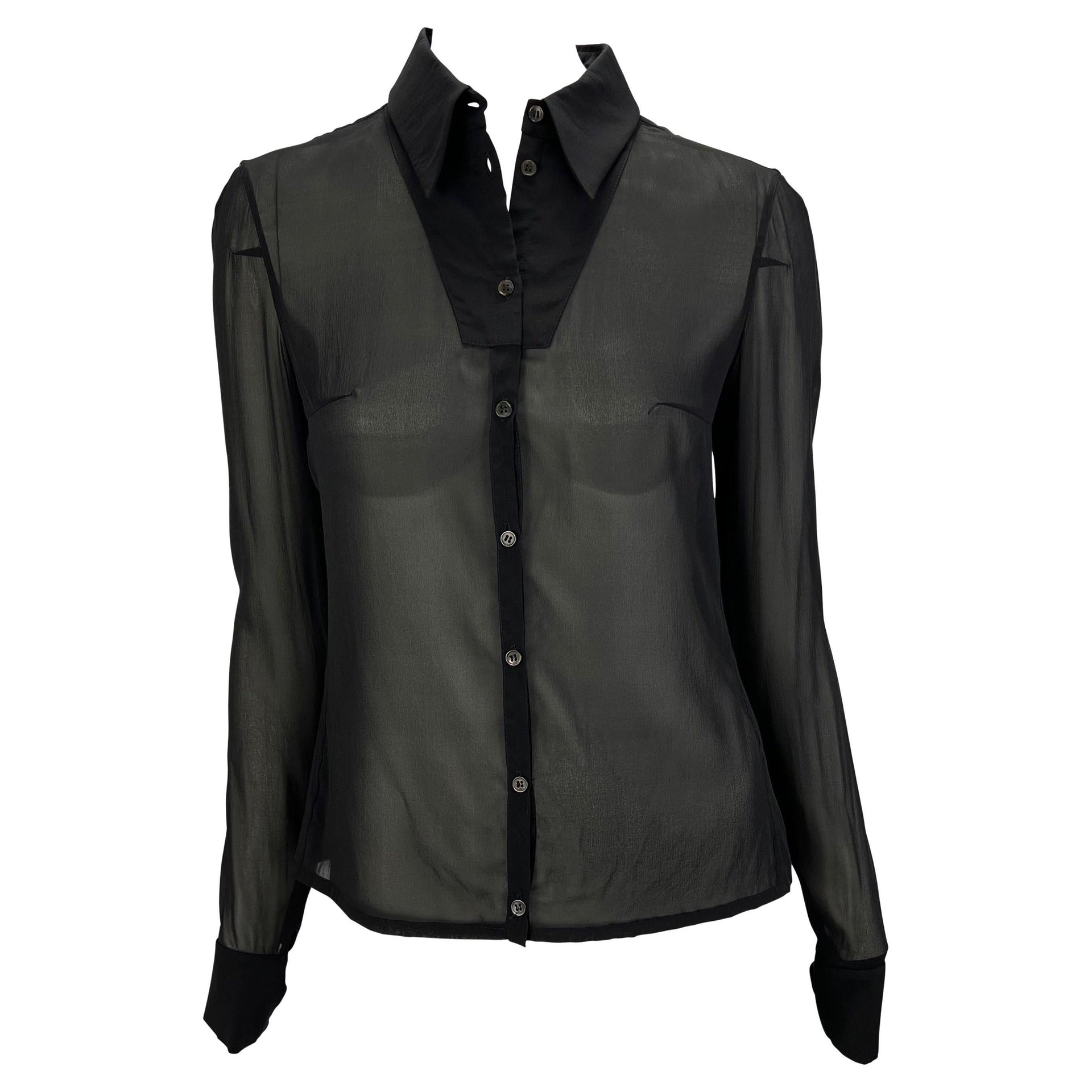 S/S 2001 Yves Saint Laurent by Tom Ford Sheer Stretch Silk Zip Sleeve Button Up Top