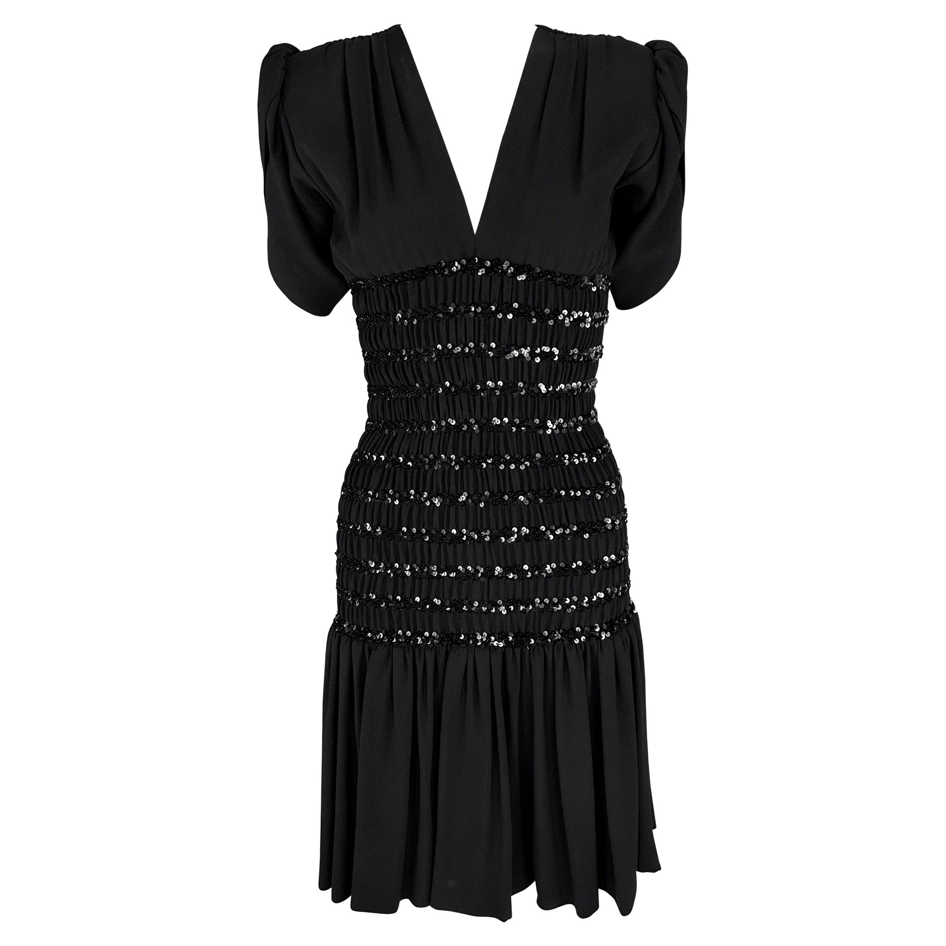 F/W 1983 Saint Laurent Runway Ad Ruched Sequin Black Petal Flare DressVendor: Saint Laurent