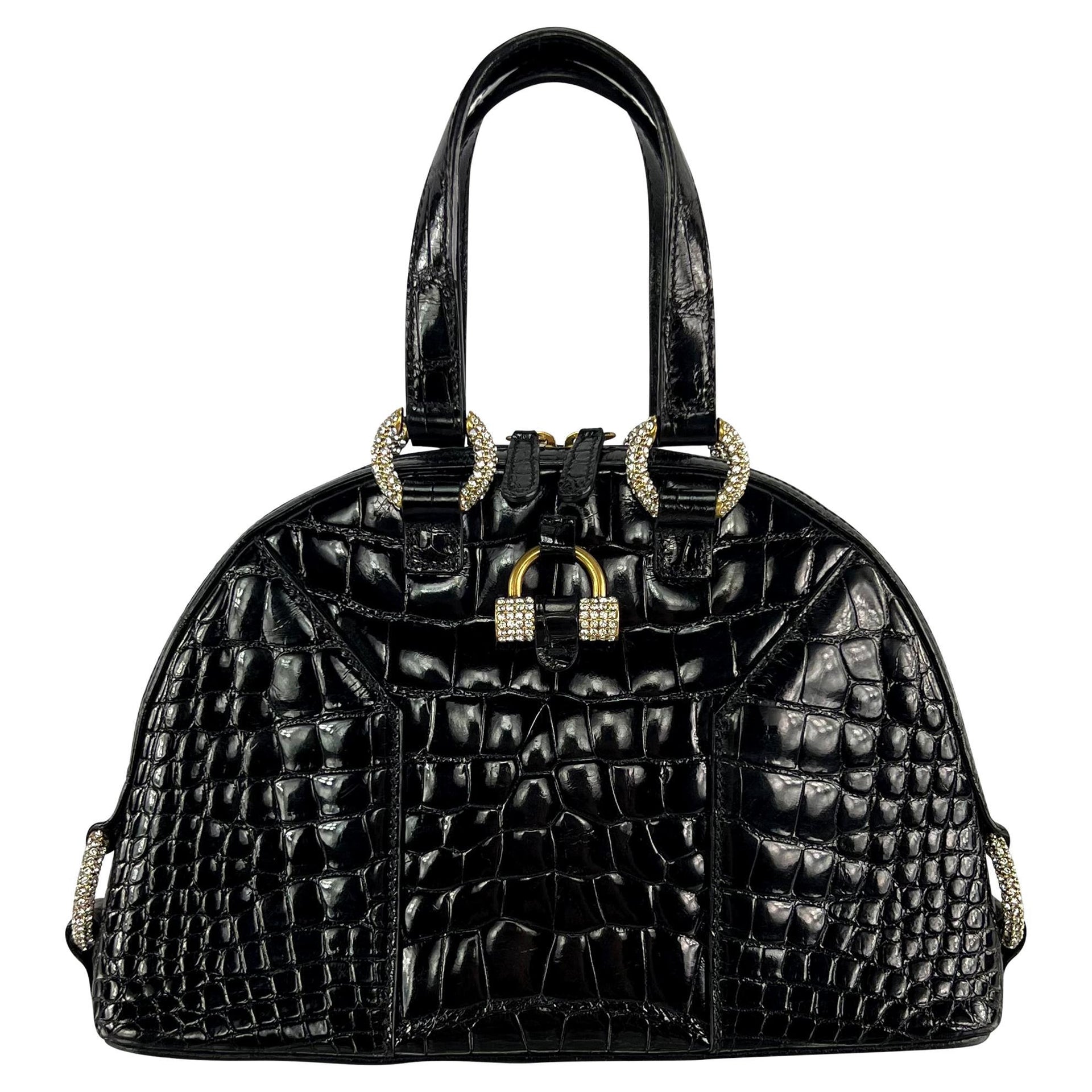 2000s Yves Saint Laurent Genuine Crocodile Skin Rhinestone Black Mini Dome Bag