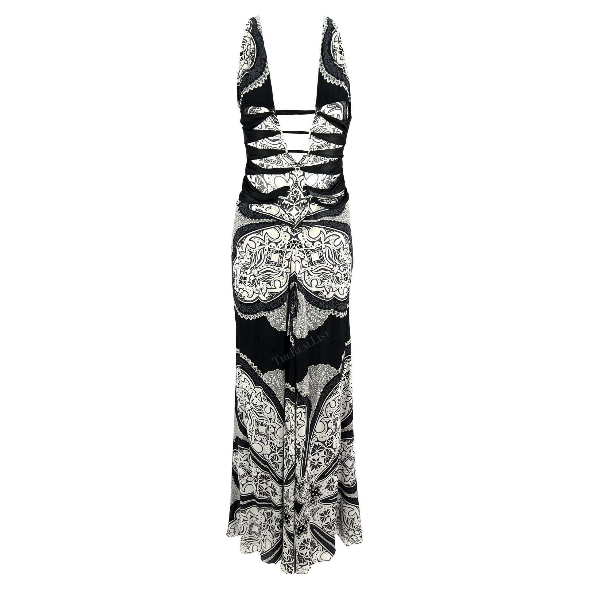 Cruise 2004 Gucci by Tom Ford Black White Paisley Silk Sheer Bandana Print Gown