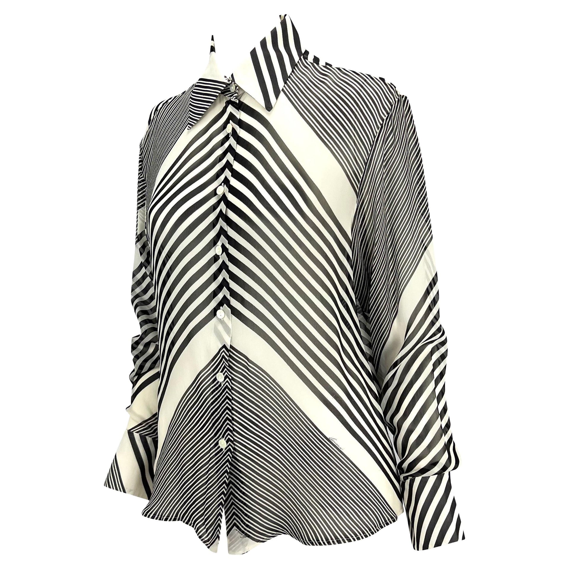 Cruise 2000 Gucci by Tom Ford Black White Stripe Sheer Button Up Top
