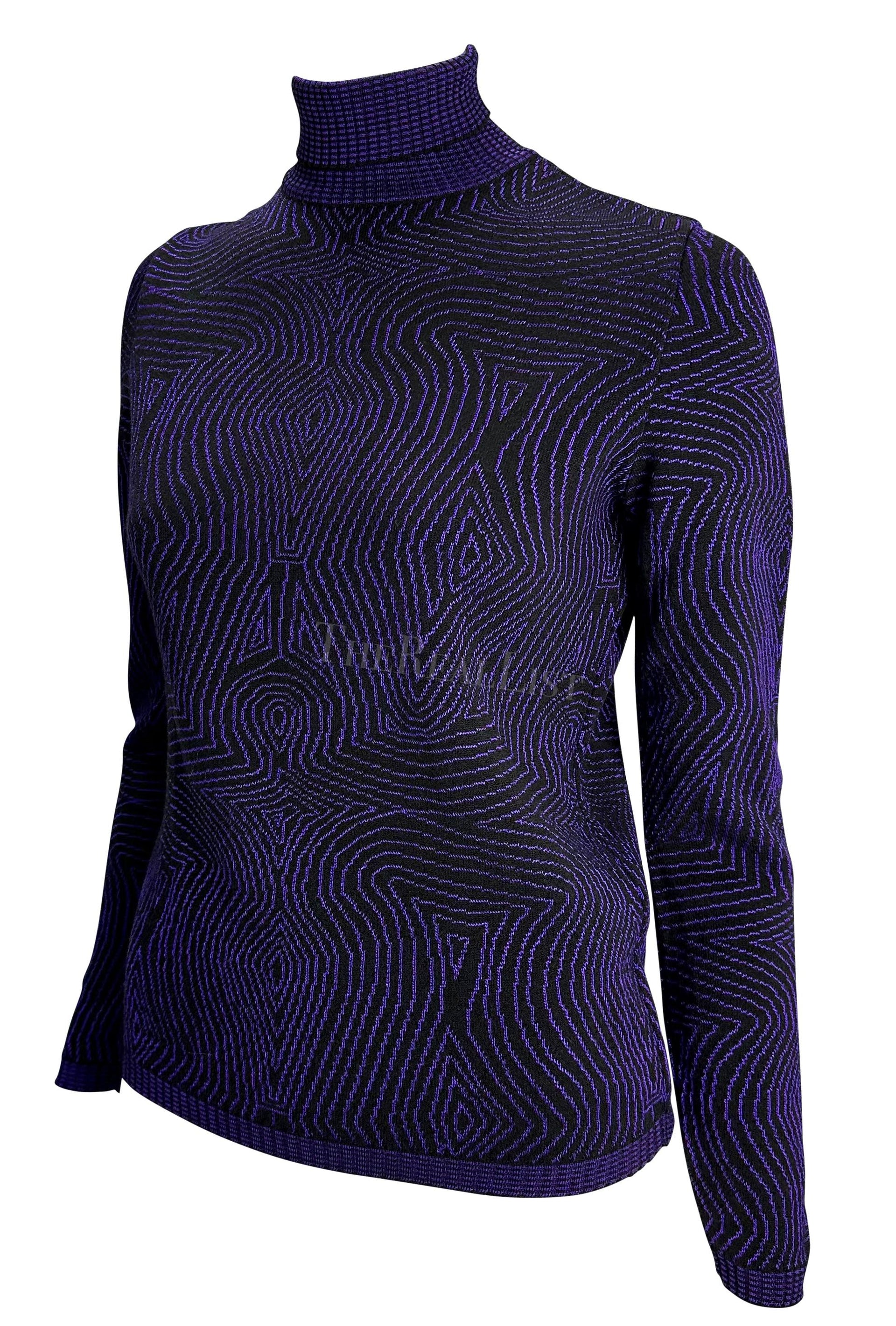 1996 Gianni Versace Purple Psychedelic Op Art Knit Roll-Neck Sweater TopVendor: Versace