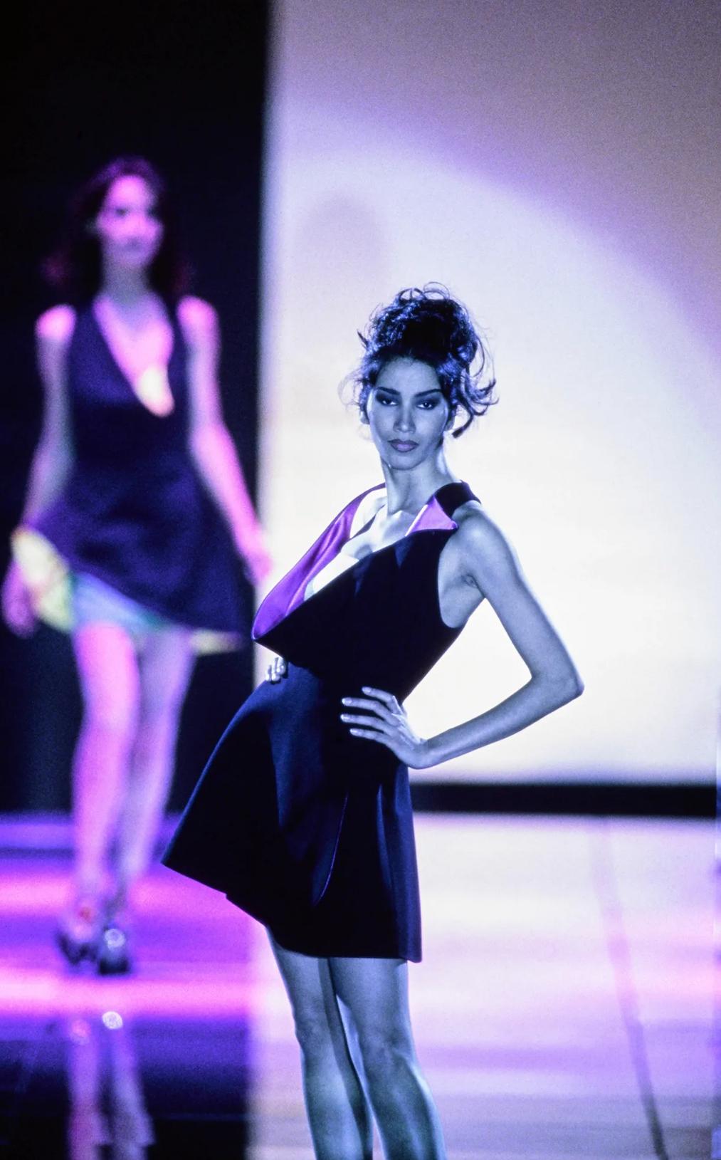 F/W 1991 Giani Versace Runway Open Bust Black Hot Pink Wrap Mini DressVendor: Versace