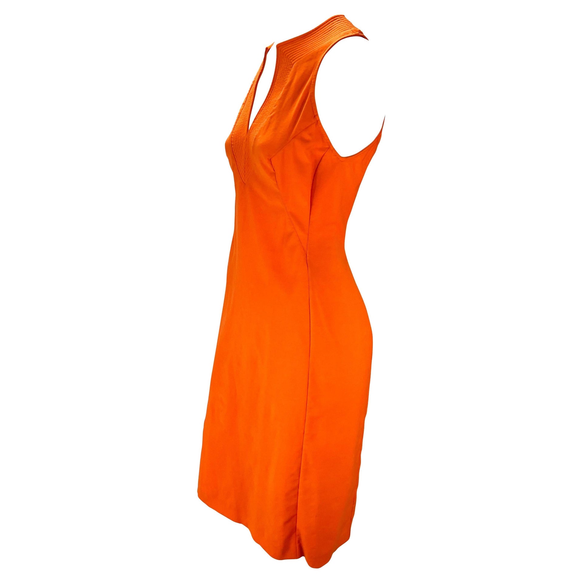 Early 2000s Versace by Donatella Neon Orange Wool Blend Sleeveless Dress