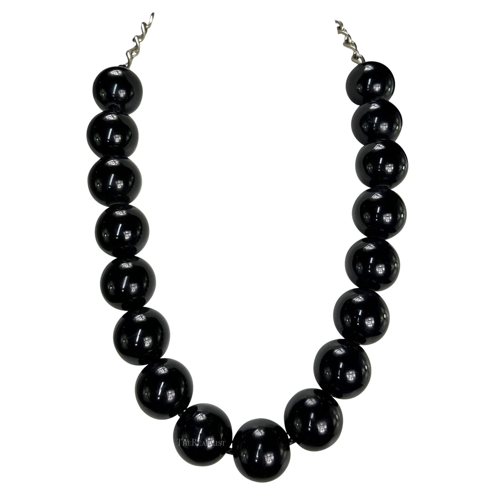 1980s Gianni Versace Oversized Black Lacquer Bead Chain Necklace