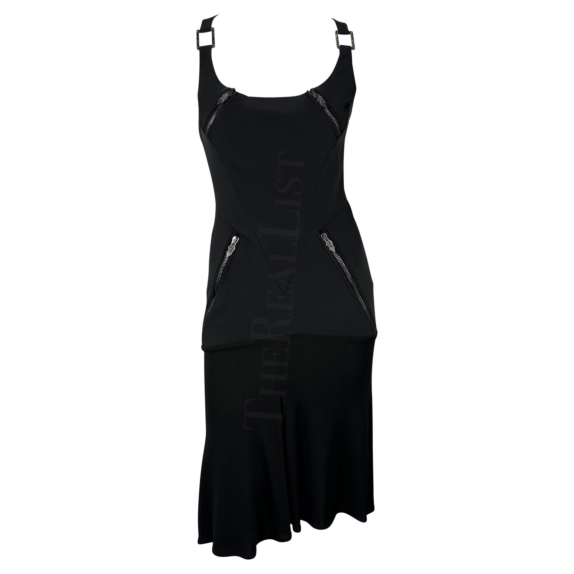F/W 2003 Versace by Donatella Black Zipper Flare Runway Dress