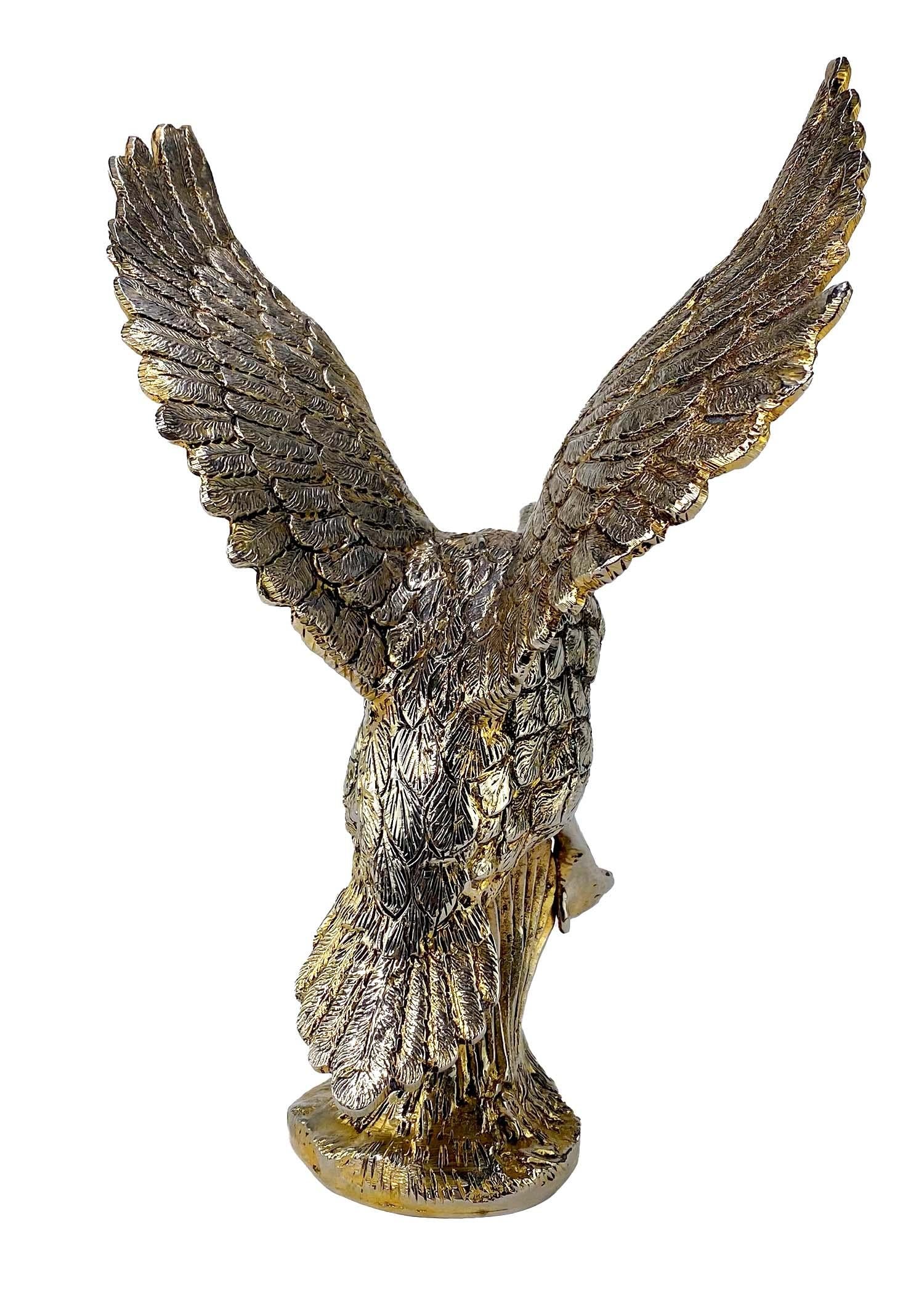 Presenting a gold-washed mallard duck sculpture from the 1970s. The metal model takes the country and equestrian influences of early Gucci and elevates them making them chic and shiny. This statue features a duck taking flight in grass. The sculpture is substantial in weight and could potentially be used as a bookend but makes a stunning piece of decor without serving any utility. From the early days of Gucci, this piece is ready to be featured in a museum or a scene of 'The House of Gucci' starring Lady Gaga. Height: 10" Wingtip to Wingtip: 7" Nose to Tail: 9" Base: 2.75"x3"