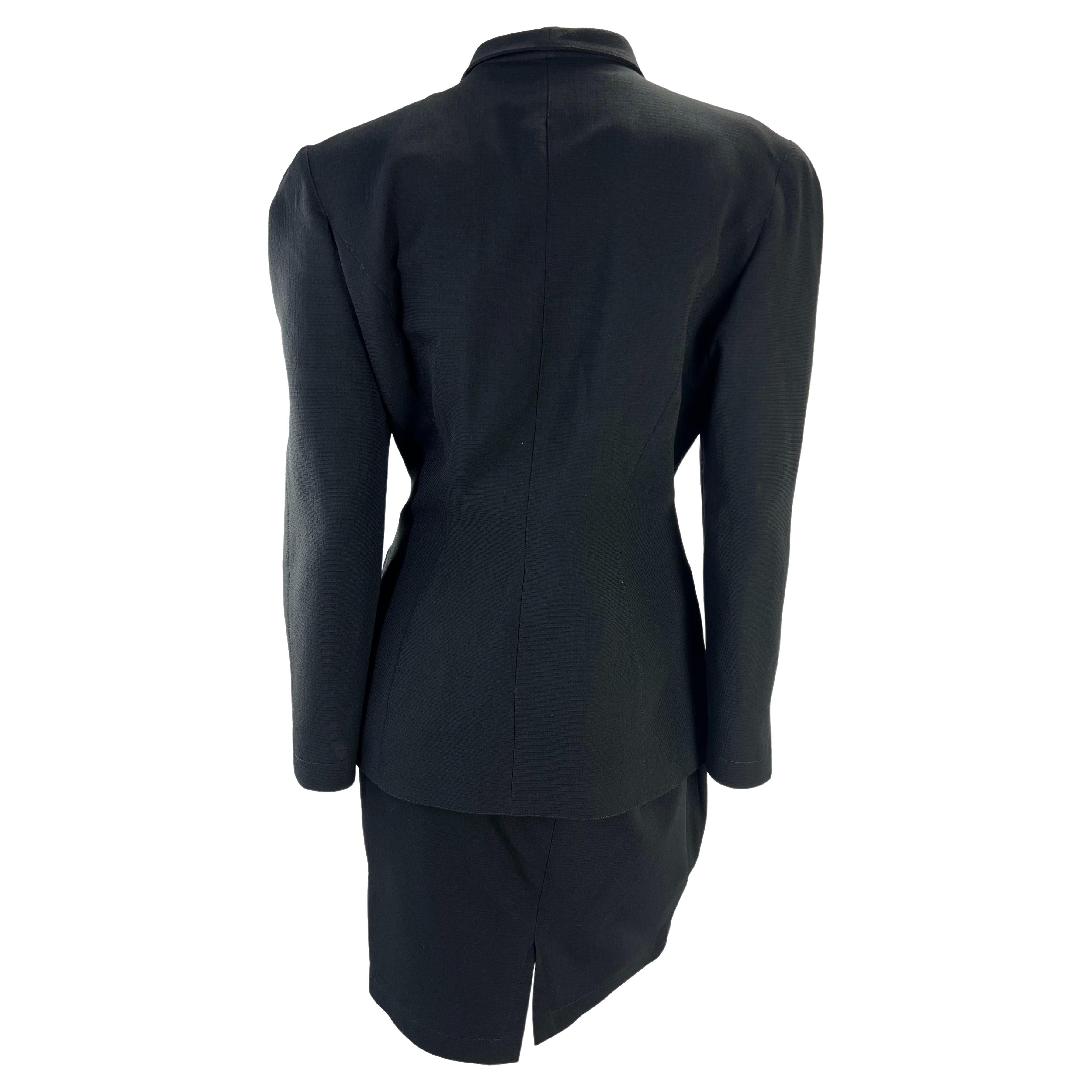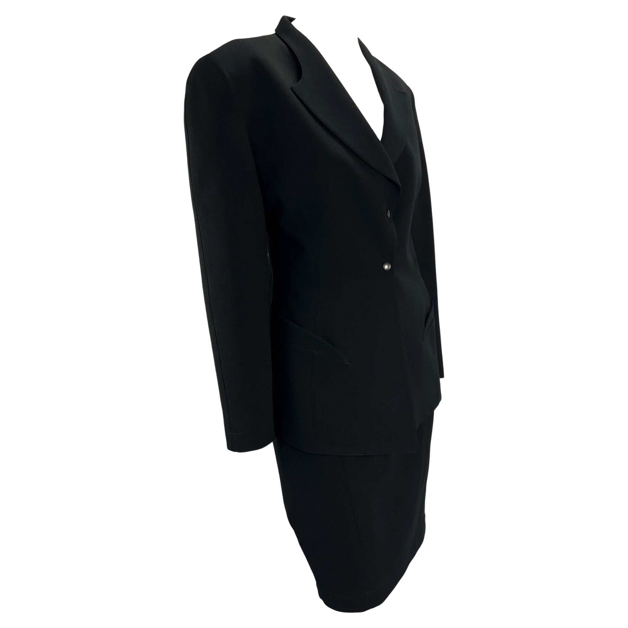 1980s Thierry Mugler Sculptural Black Wool Skirt Suit