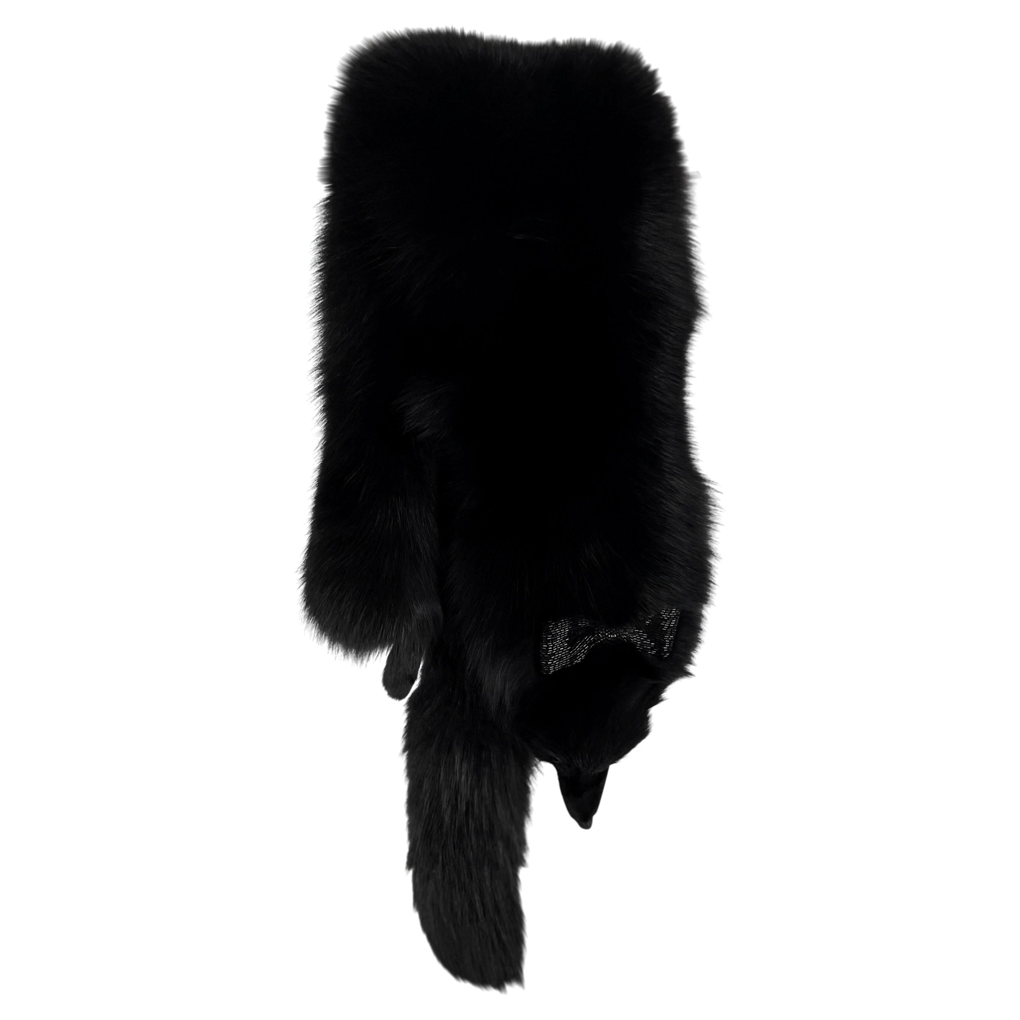 1984 Valentino Garavani Runway Rhinestone Beaded Bow Night Black Fox Fur Scarf