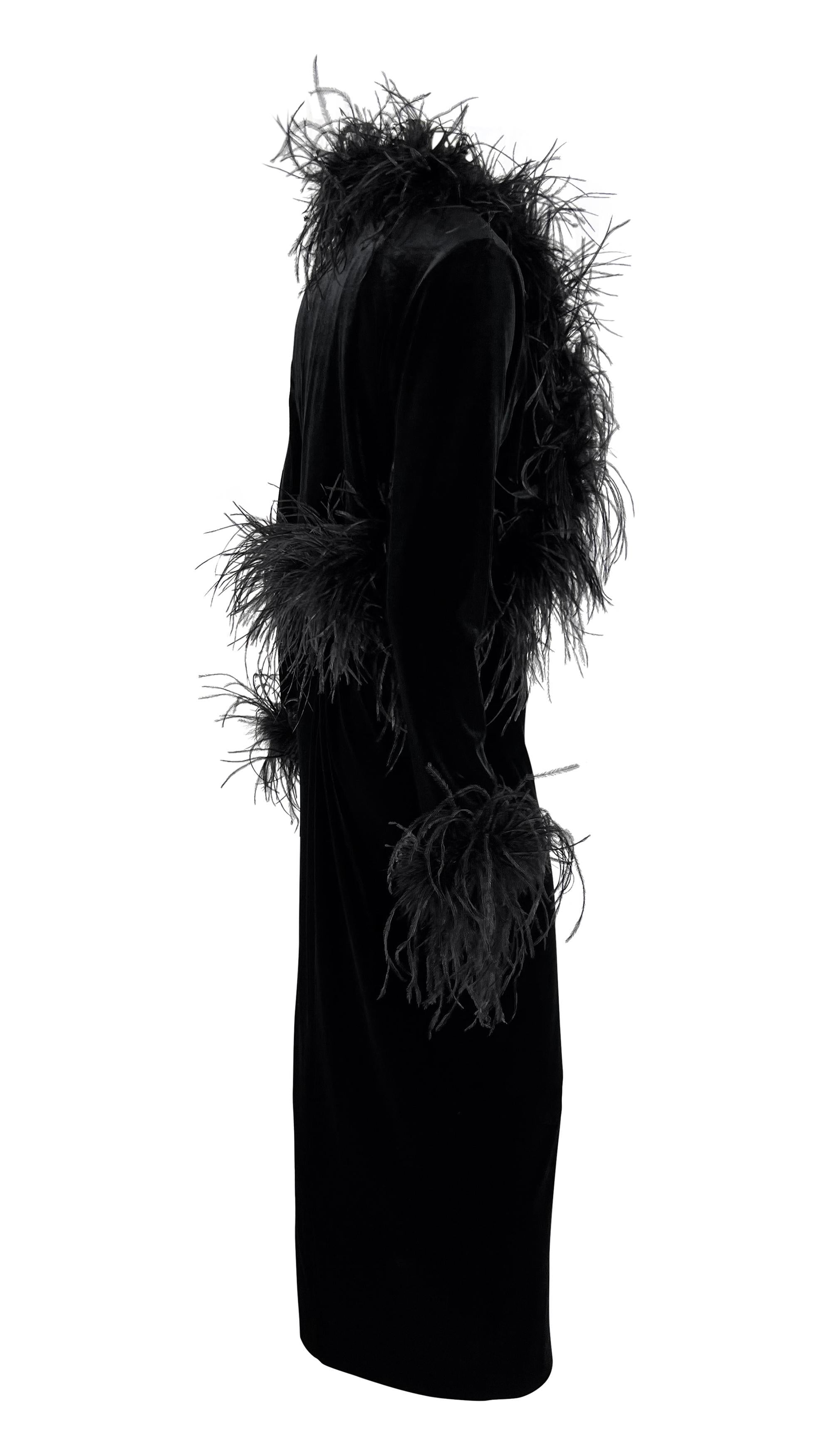 1990s Bob Mackie Marabou Ostrich Feather Trim Black Velvet Sleeveless Dress Set