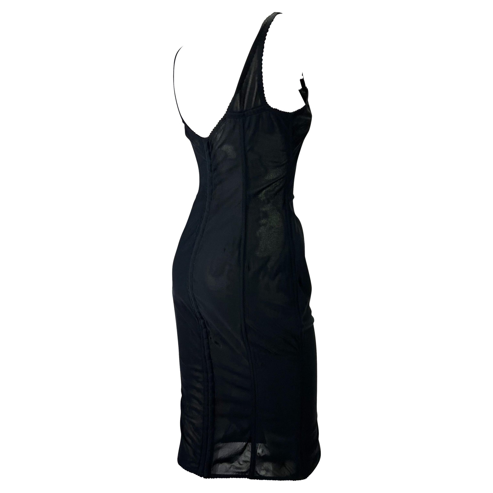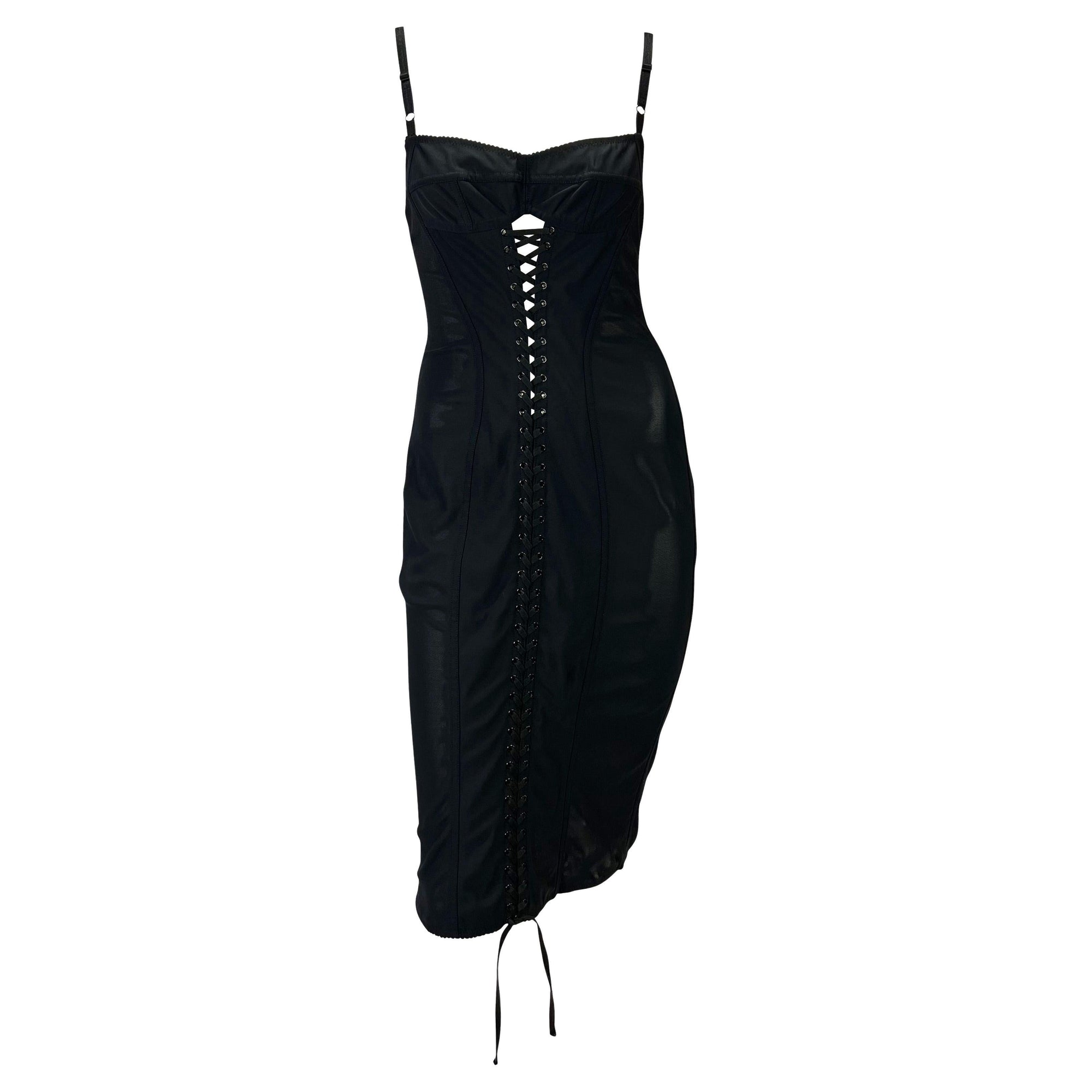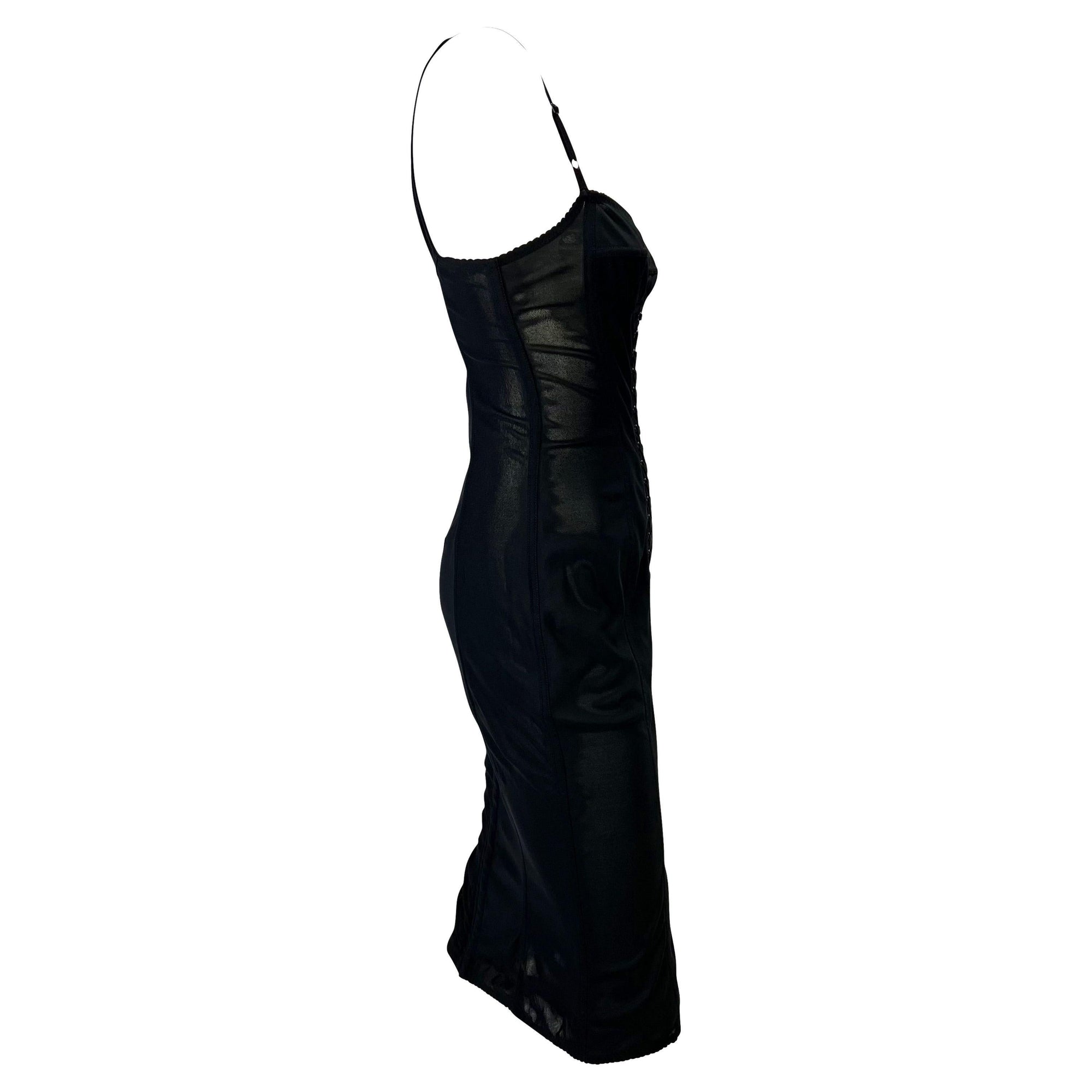 1990s Dolce & Gabbana Lace-Up Sheer Bustier Black Corset Dress