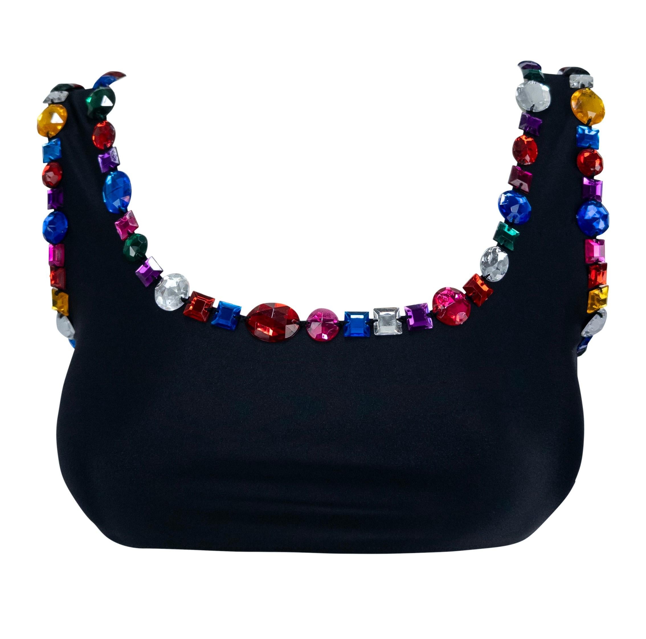 1990s Dolce & Gabbana Rhinestone Multicolor Jeweled Black Swim Skirt Set