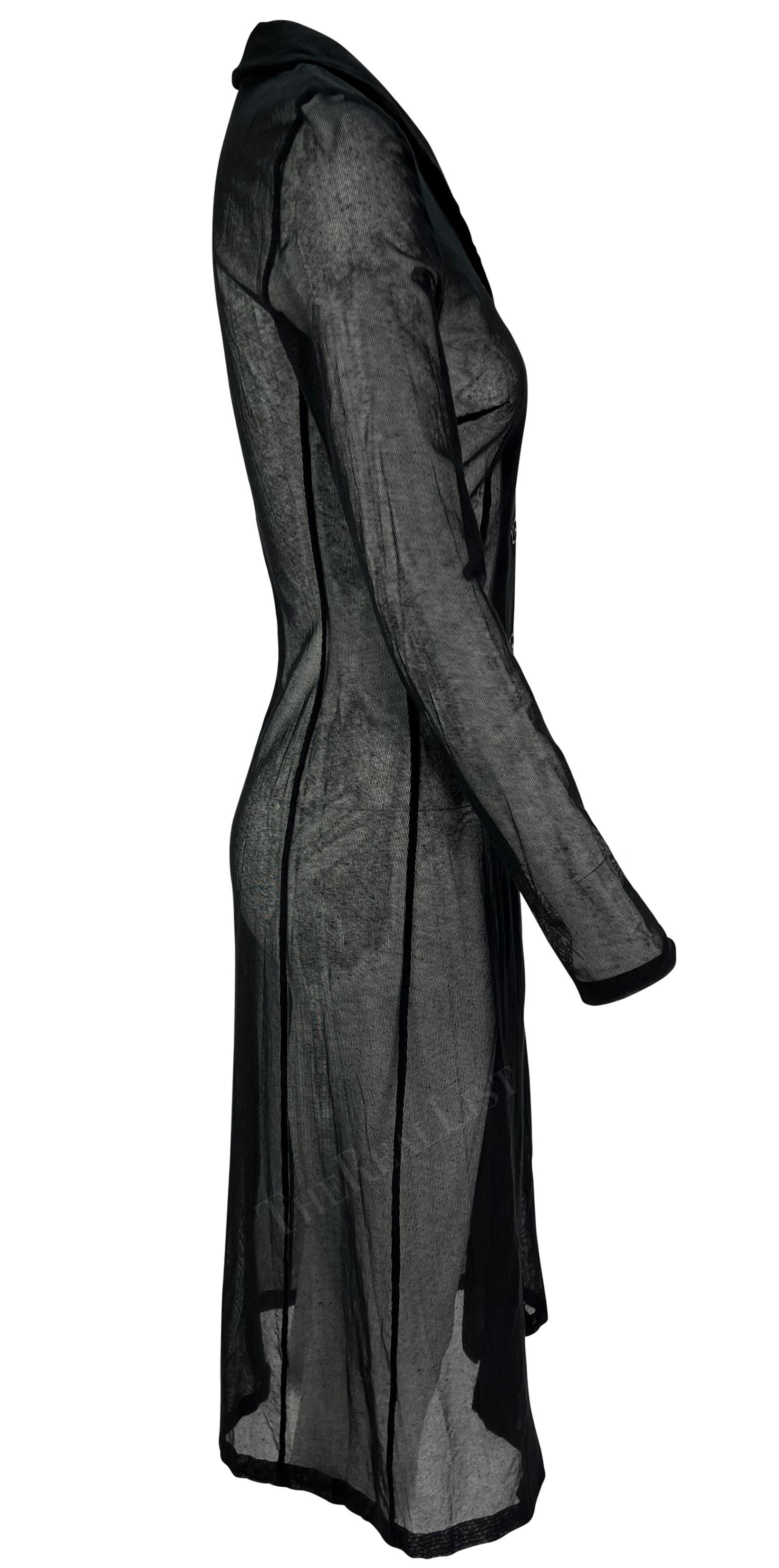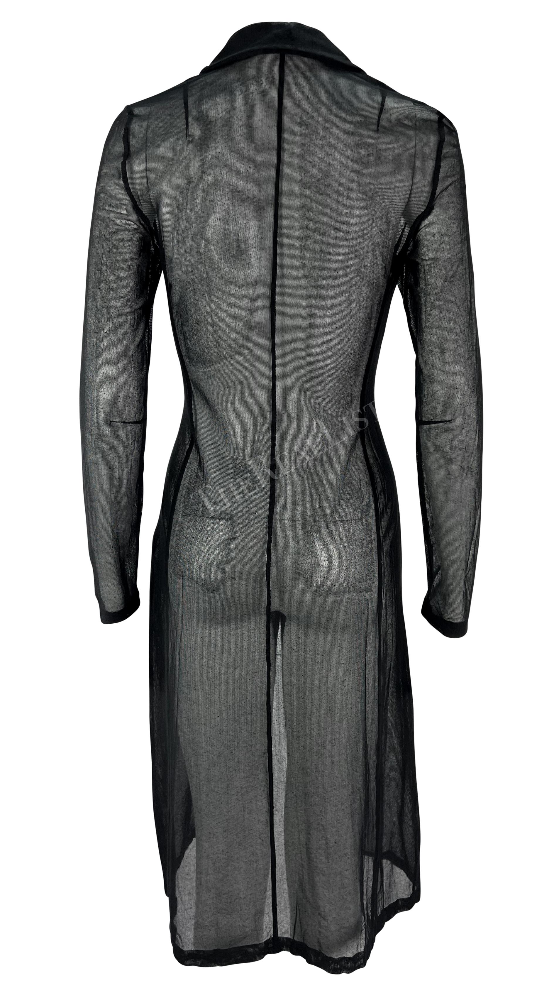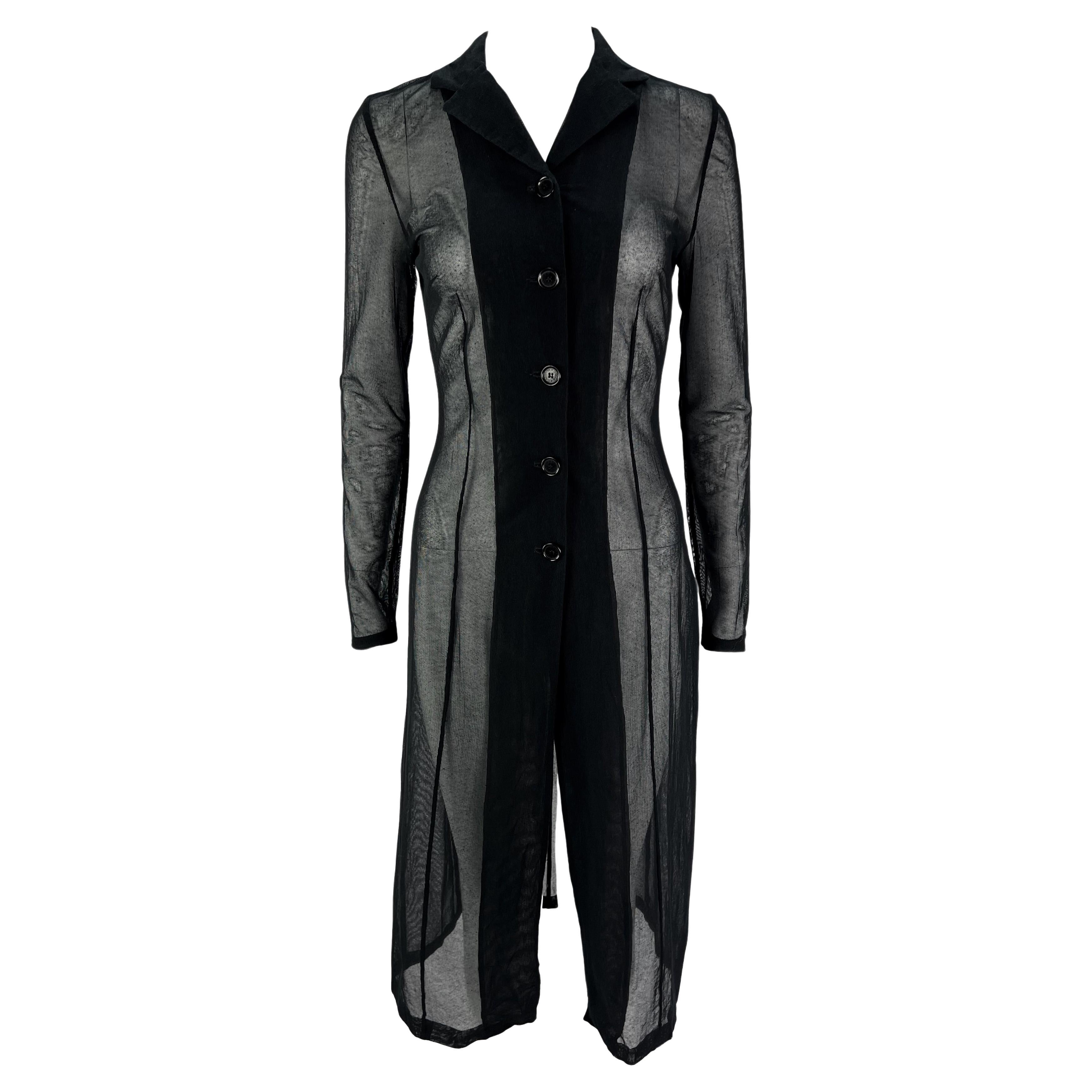 1990s Dolce & Gabbana Sheer Black Mesh Stretch Button Coat Dress