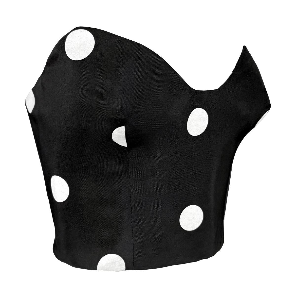 1990s Gianfranco Ferré Black White Polka Dot Corset Boned Strapless Bustier Top