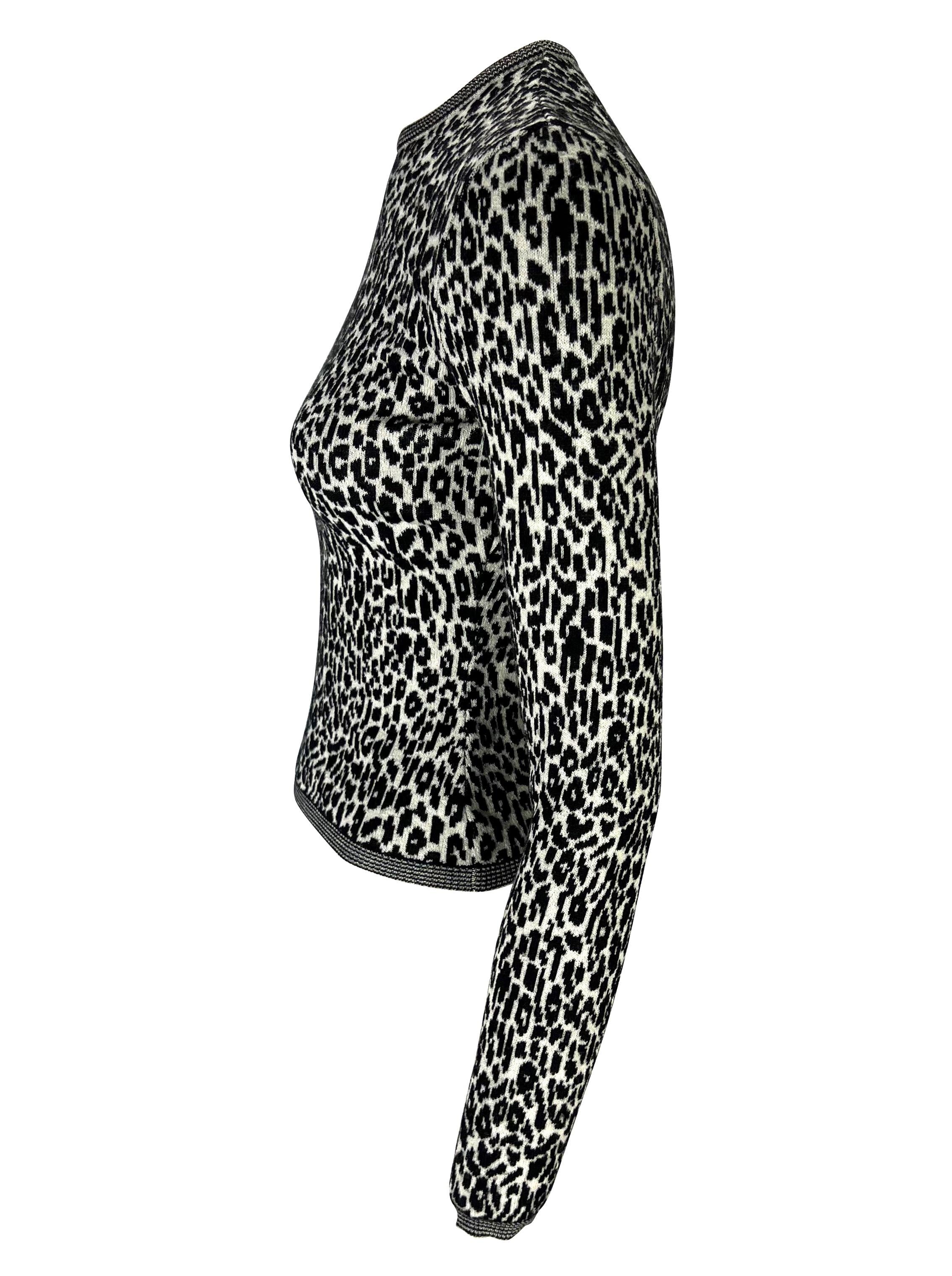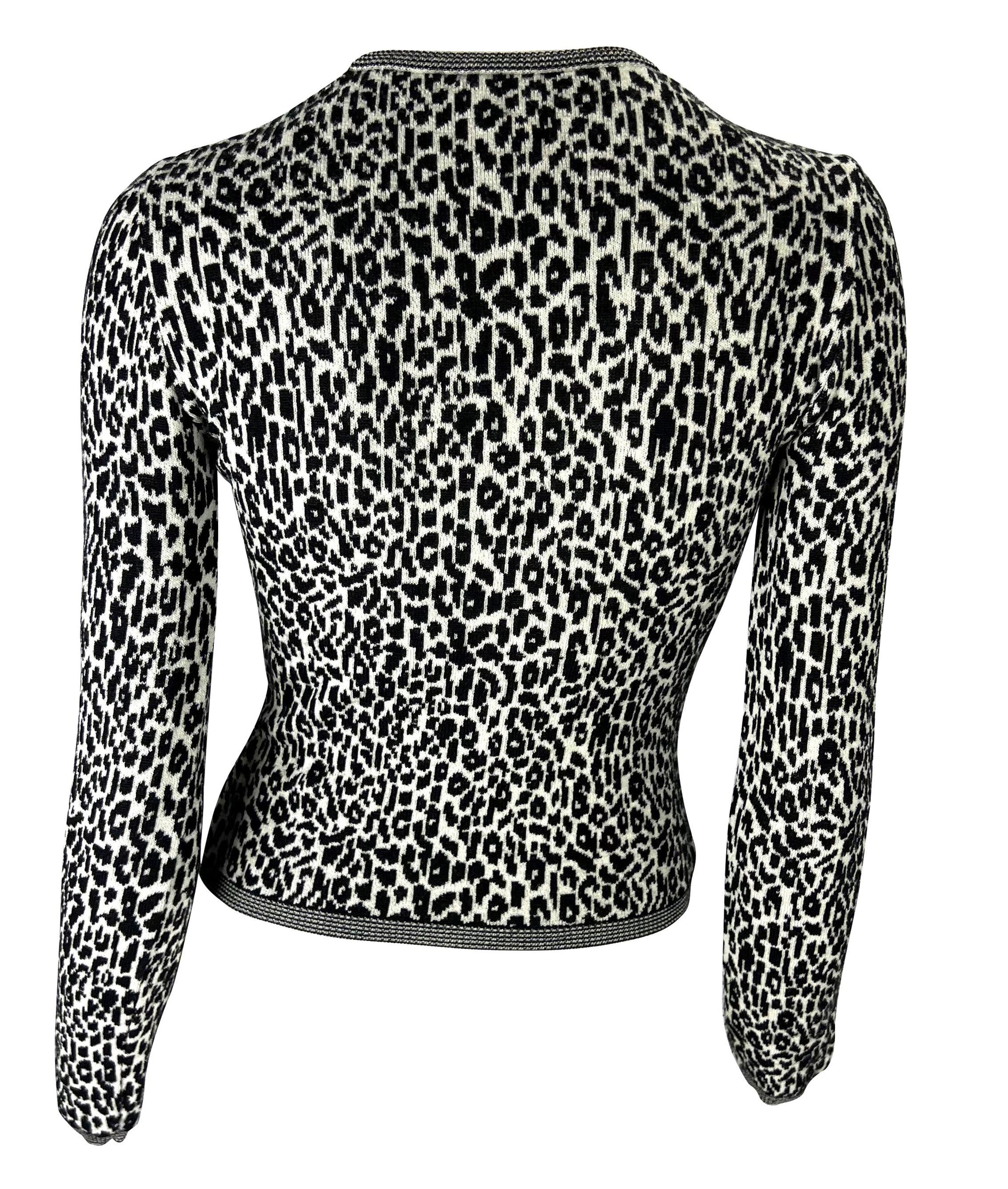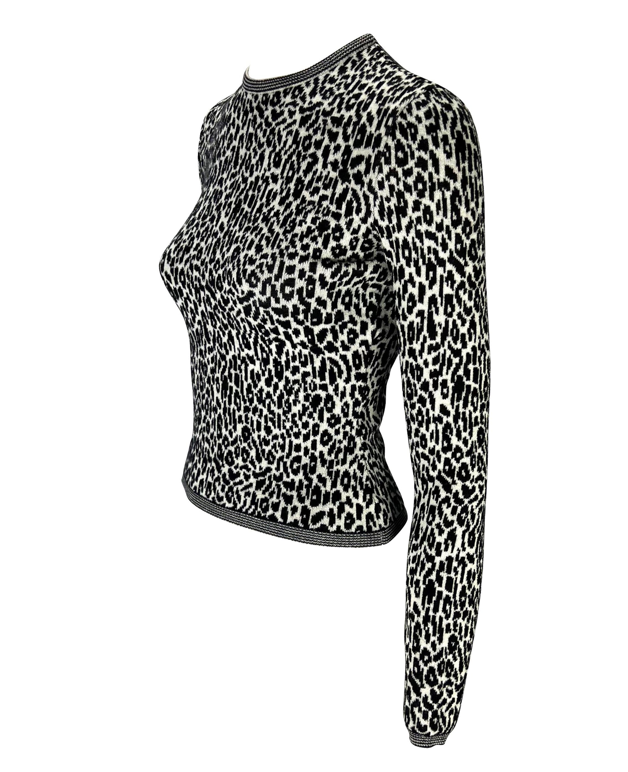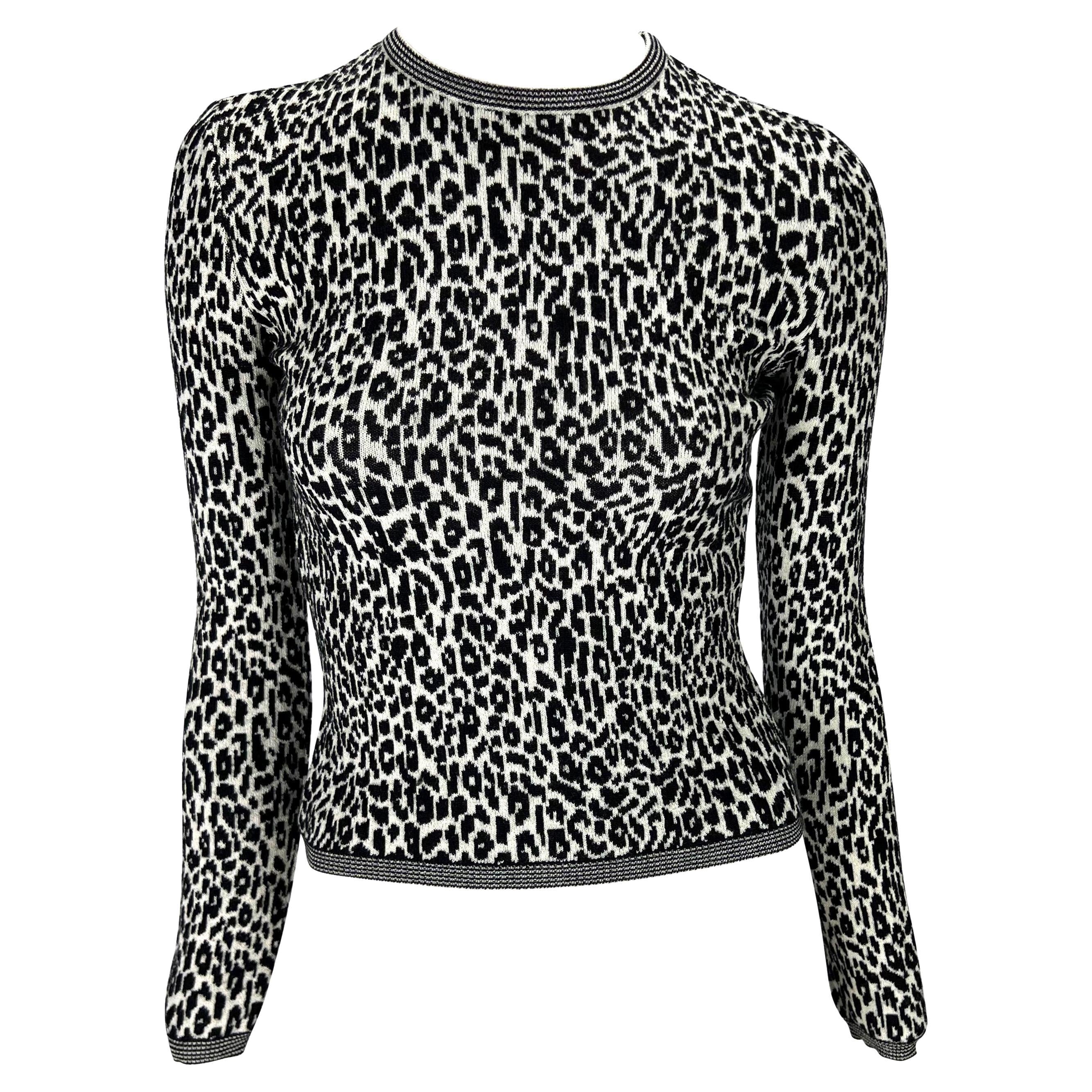 1990s Gianni Versace Black White Cheetah Print Stretch Knit Sweater Top