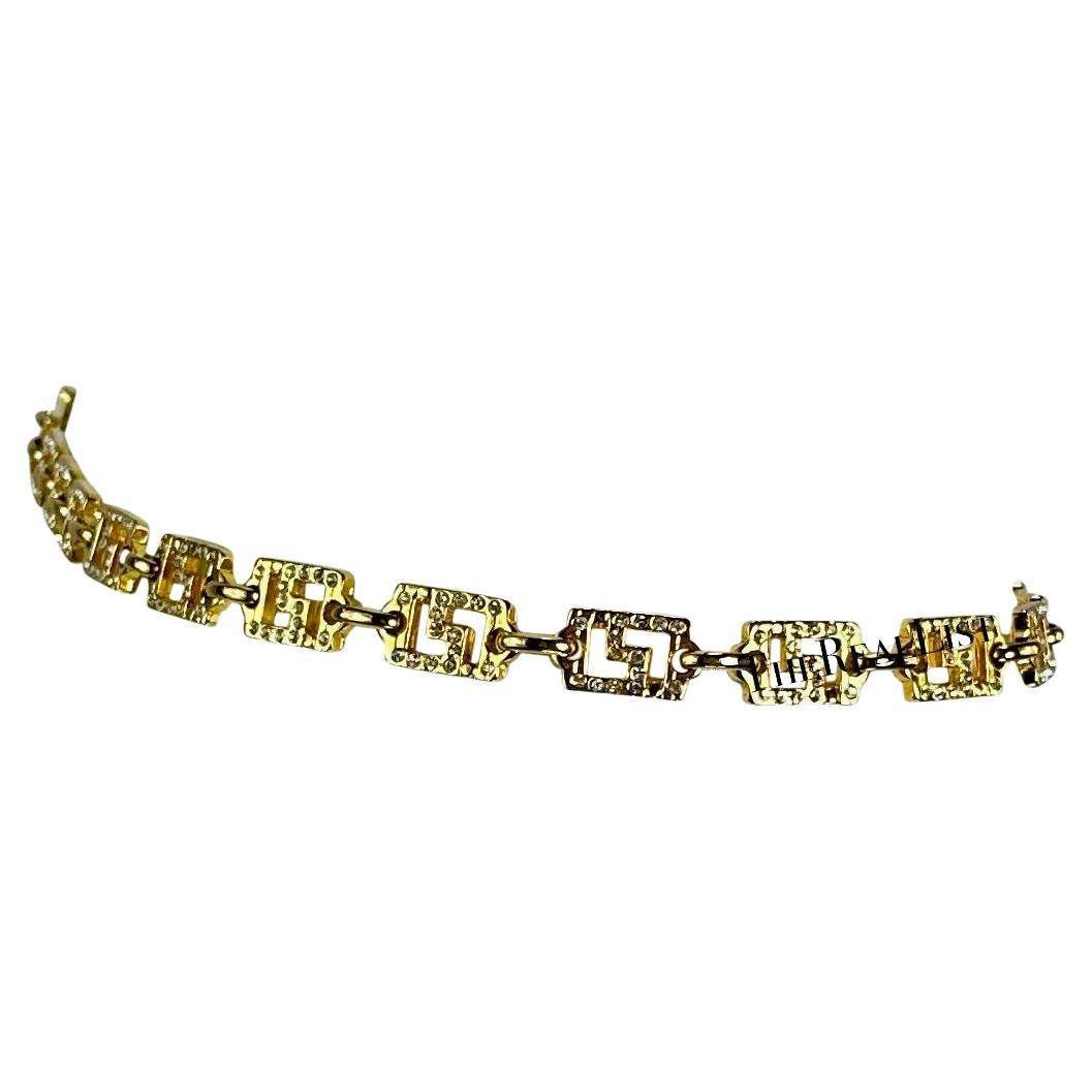 1990s Gianni Versace Gold Tone Rhinestone Greek Key Medusa Medallion Chain Belt