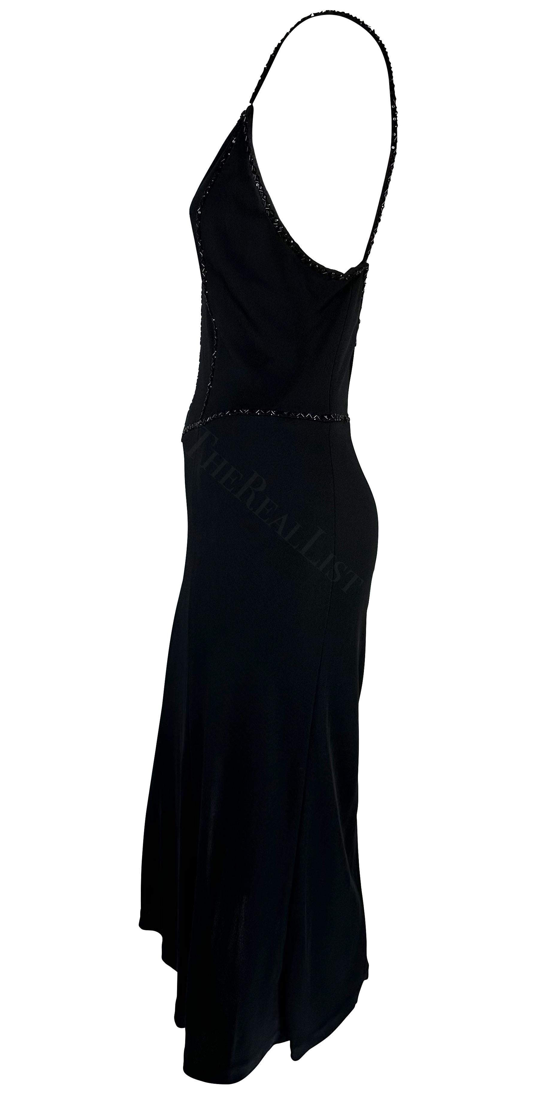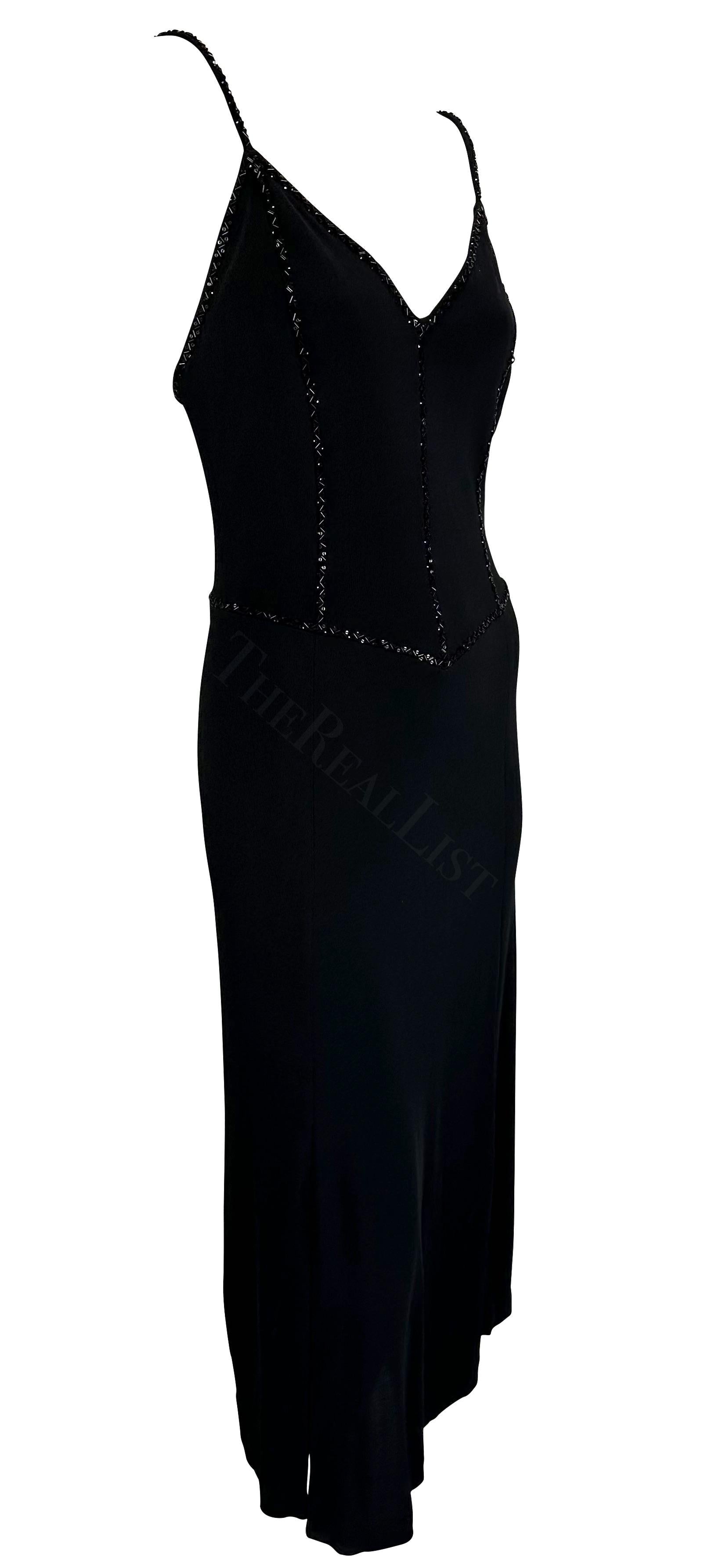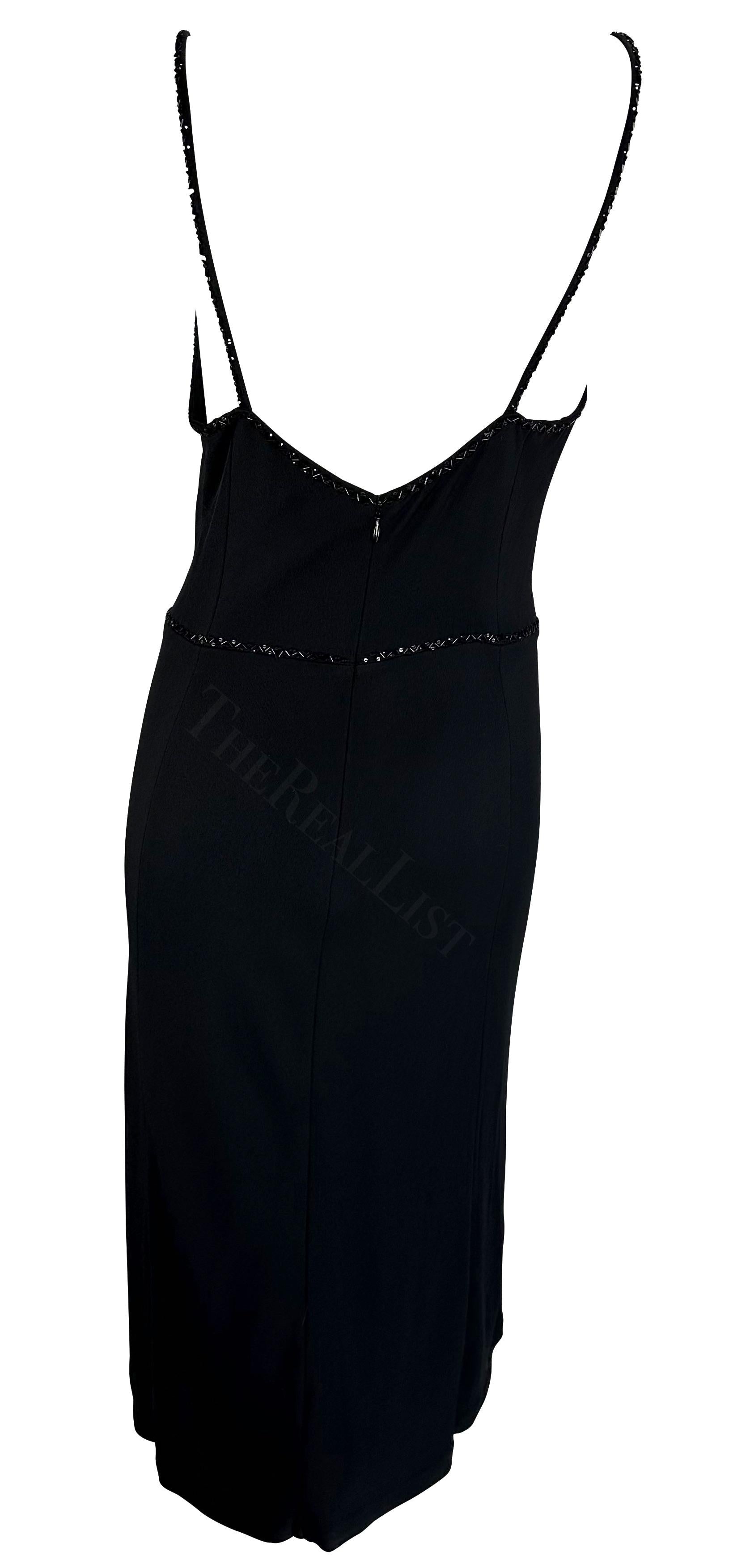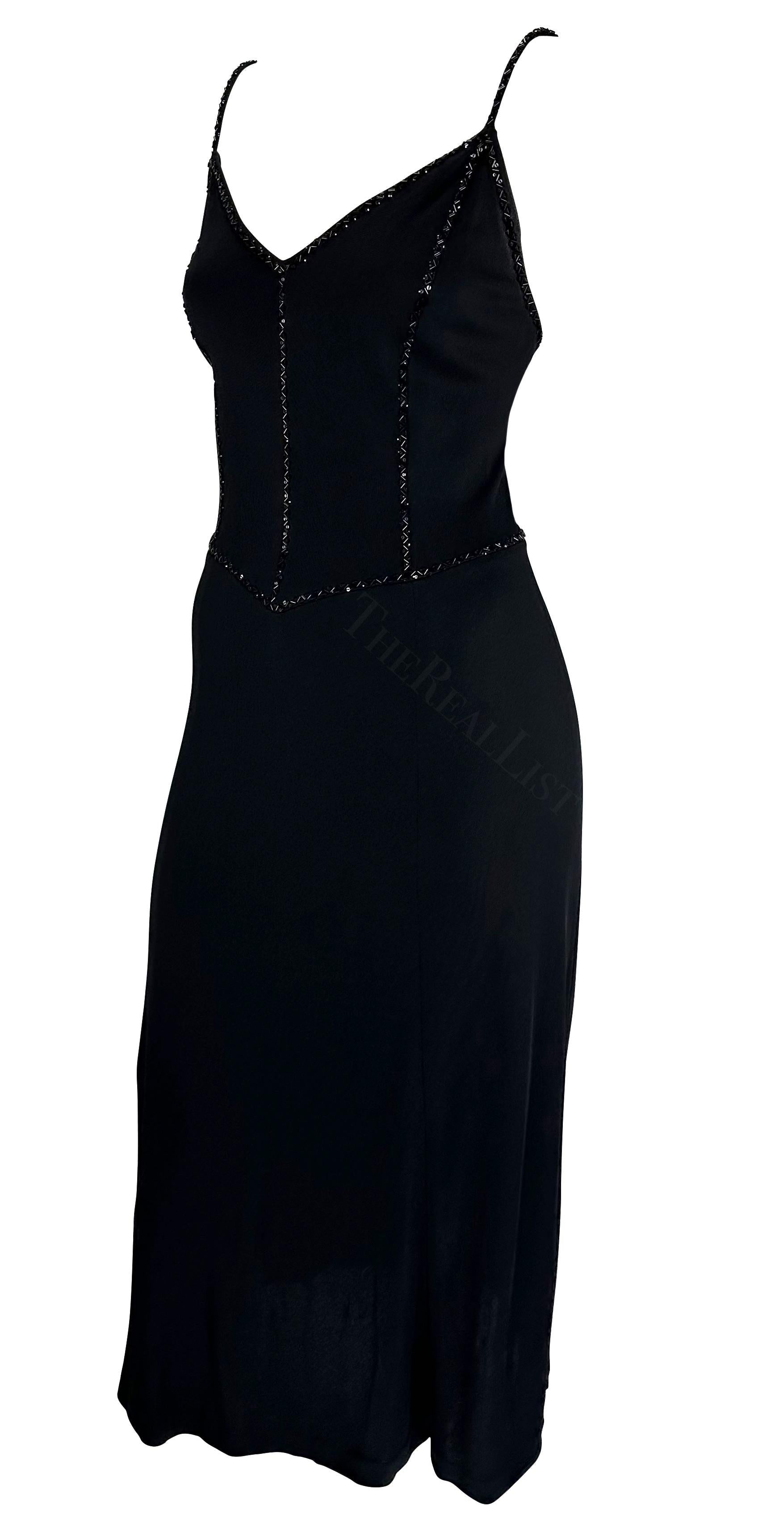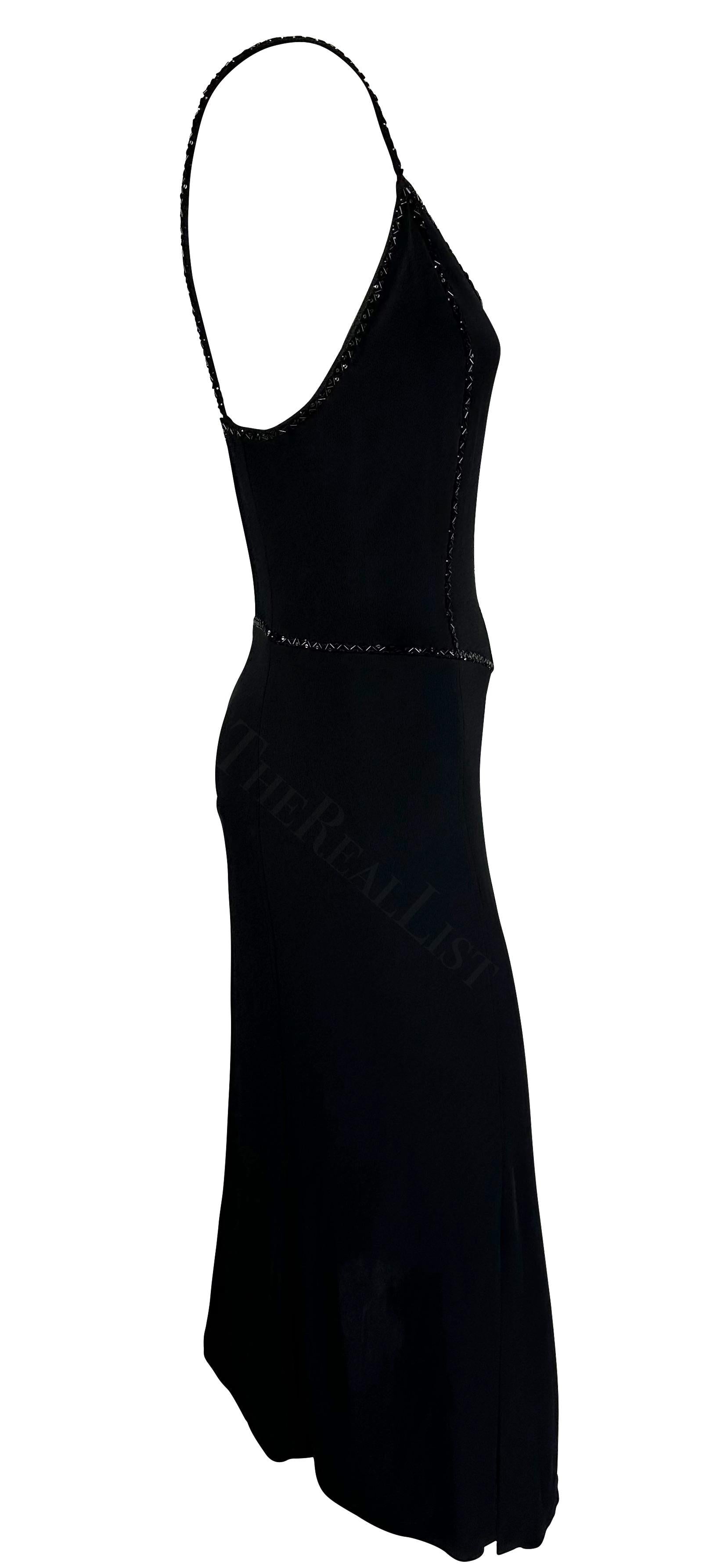 1990s Giorgio Armani Black Beaded Spaghetti Strap Midi Dress