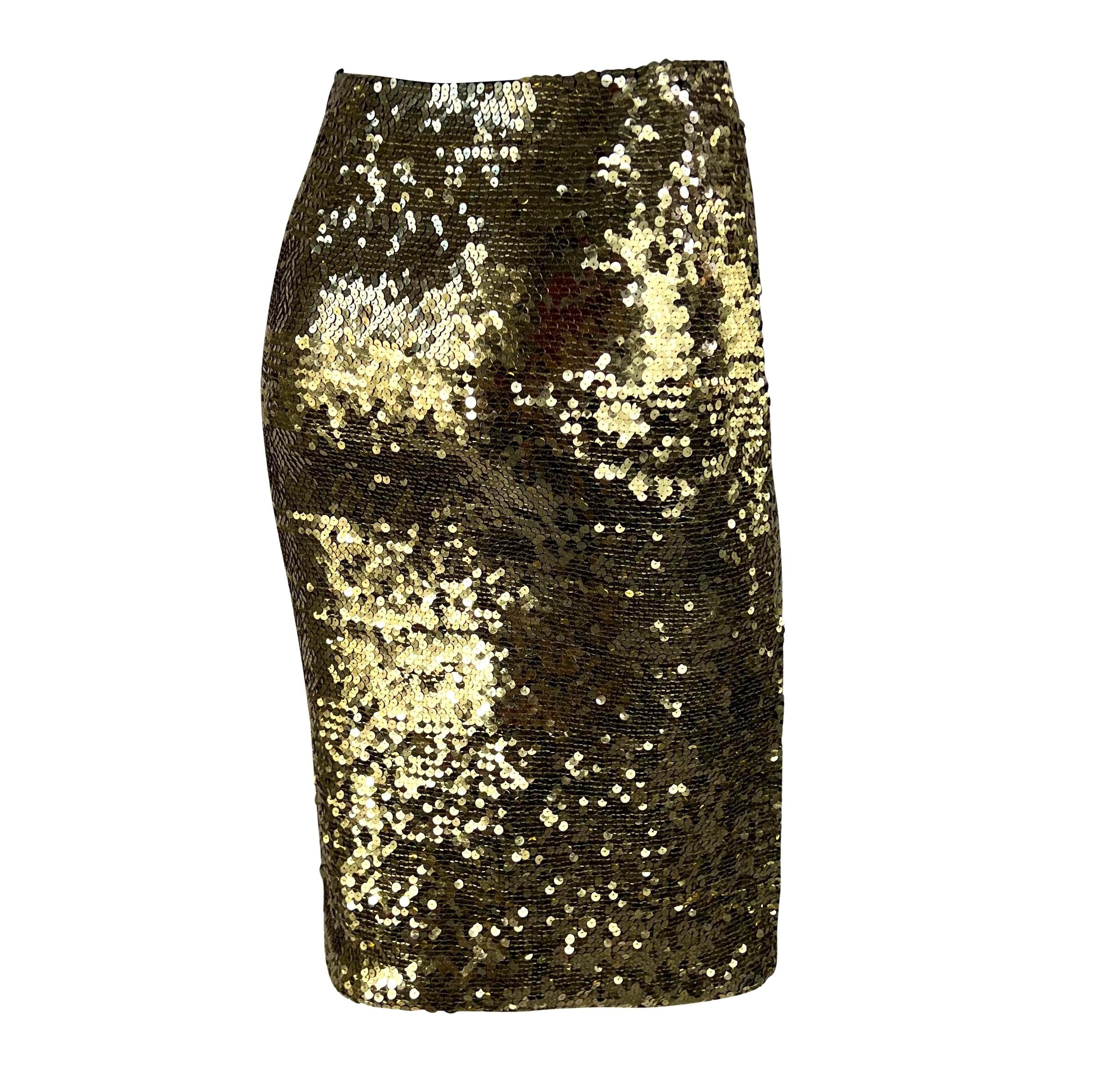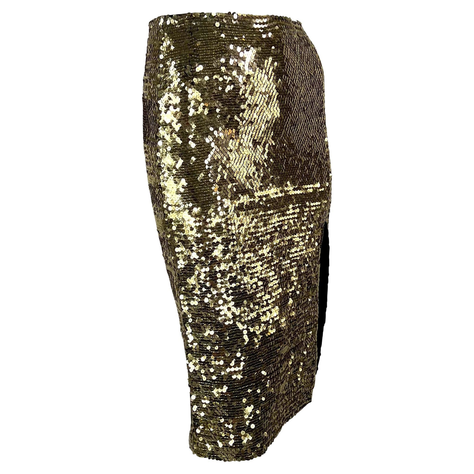 1990s John Galliano Gold Sequin Slit Bodycon Pencil Skirt