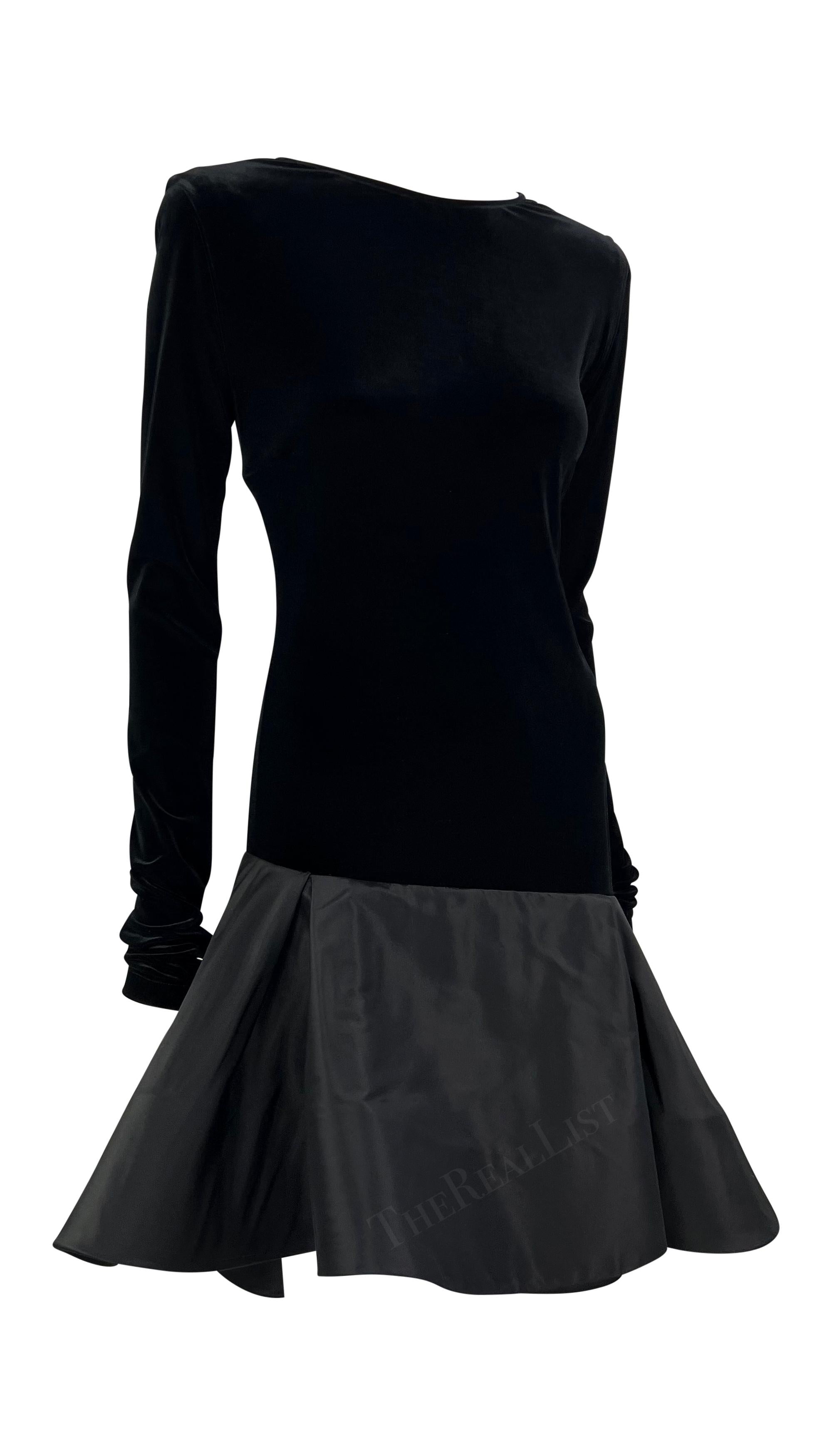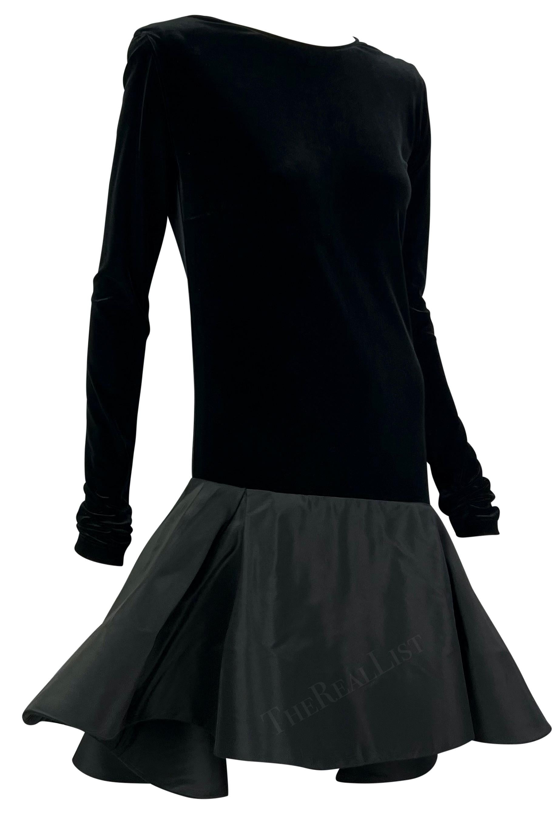 1990s Pierre Cardin Haute Couture Black Velvet Long Sleeve Flare Dress