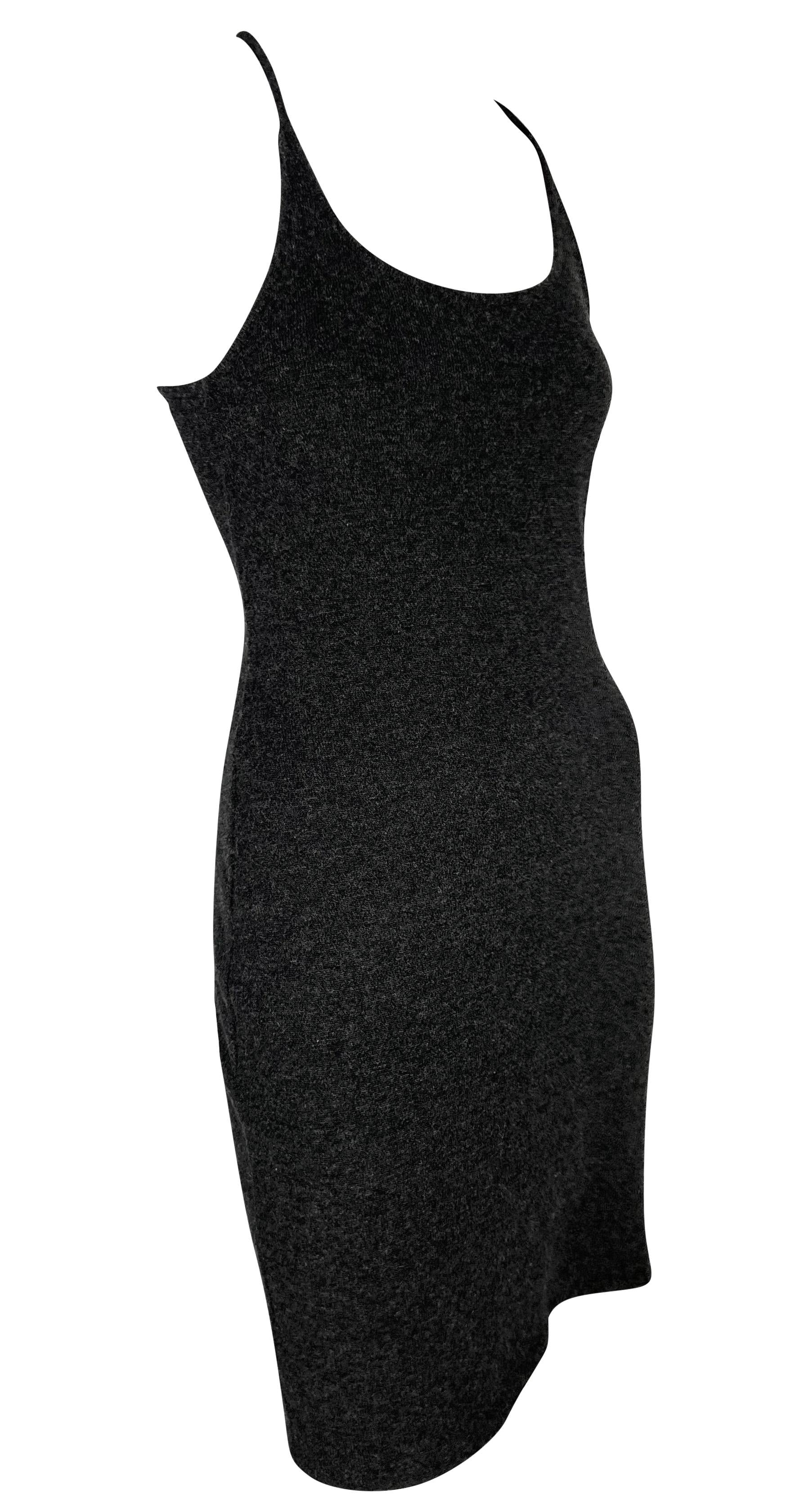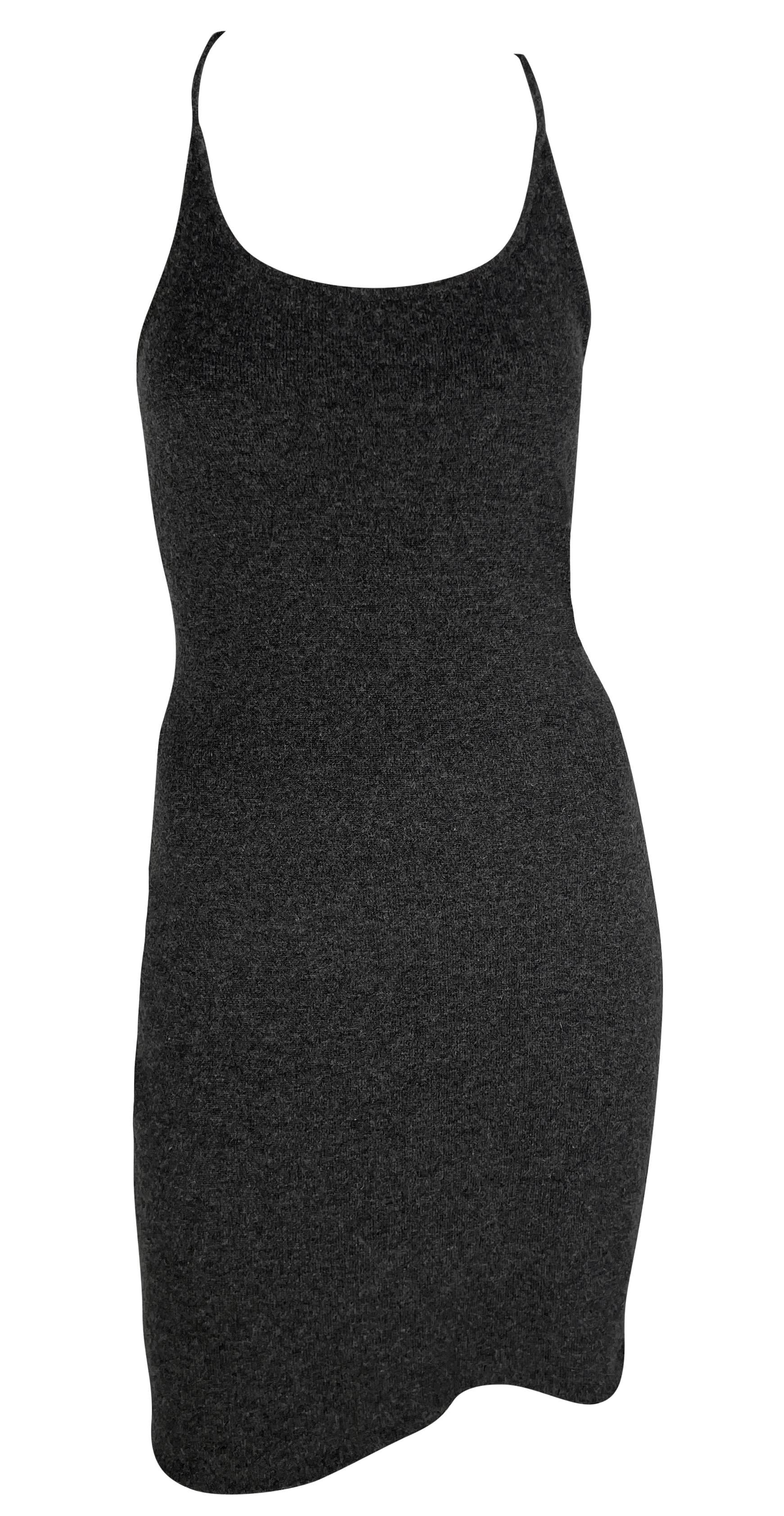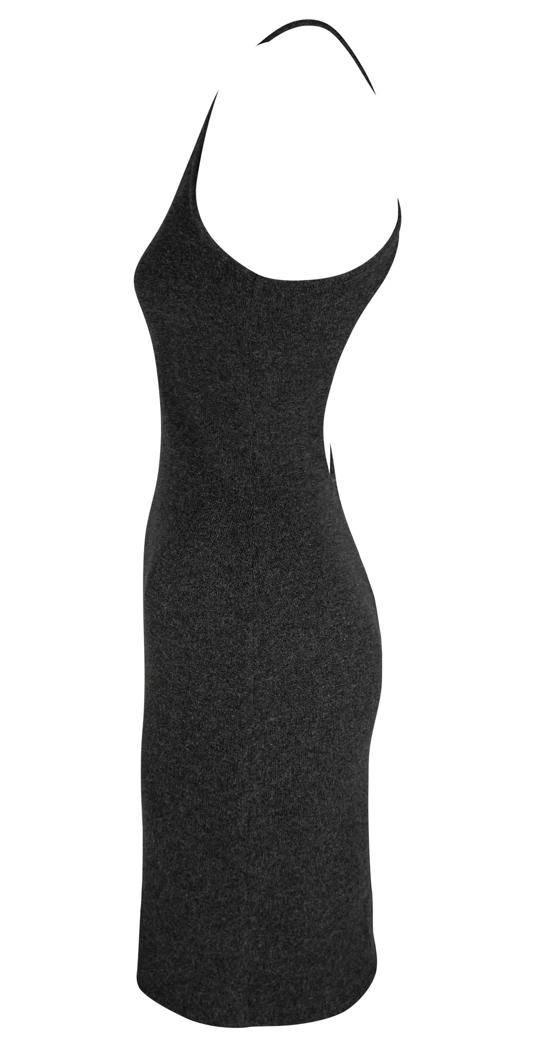 1990s Ralph Lauren Cashmere Knit Backless Charcoal Grey Bodycon Mini Dress