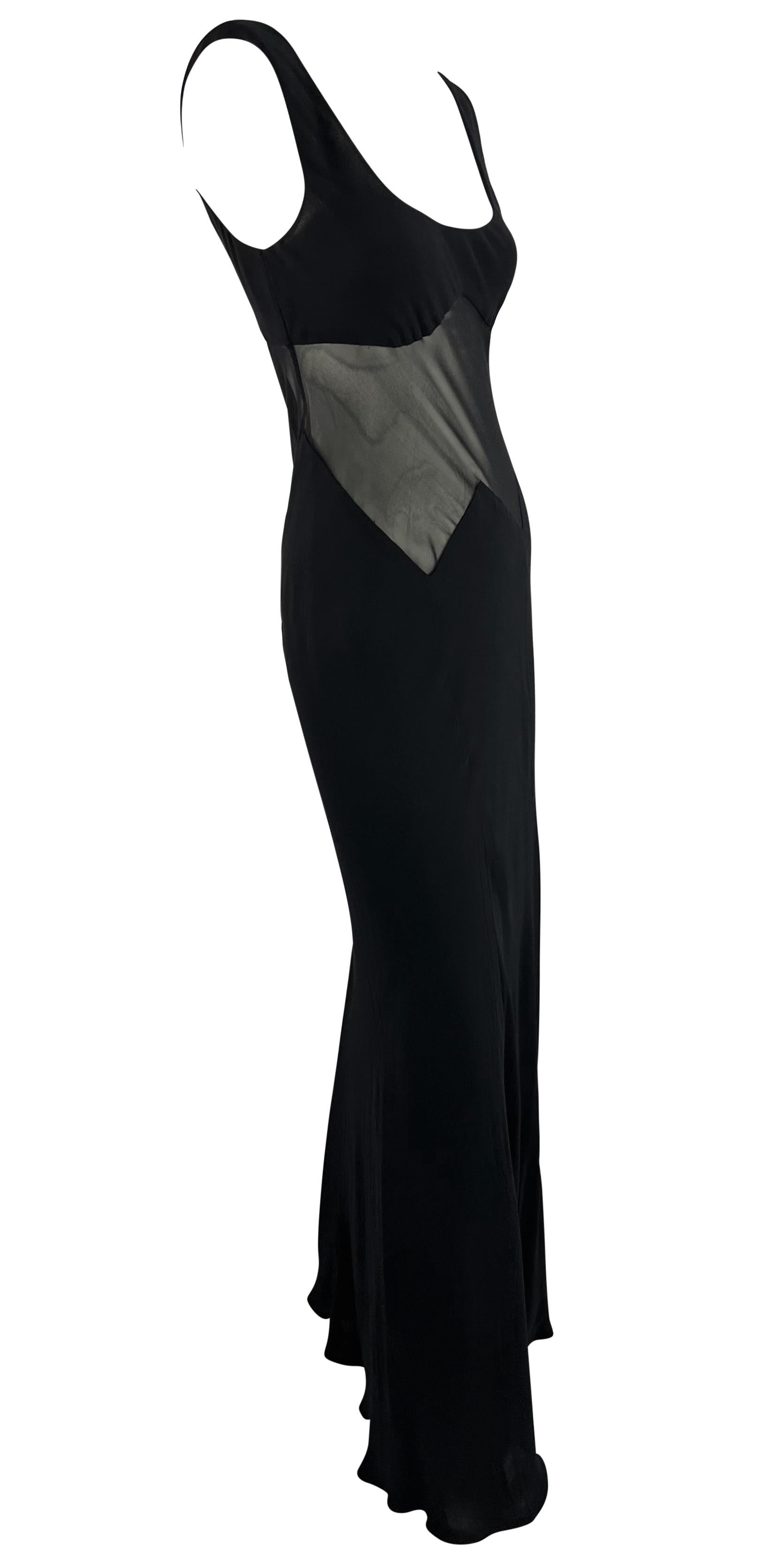 1990s Richard Tyler Angular Sheer Waist Black Silk Slip Gown