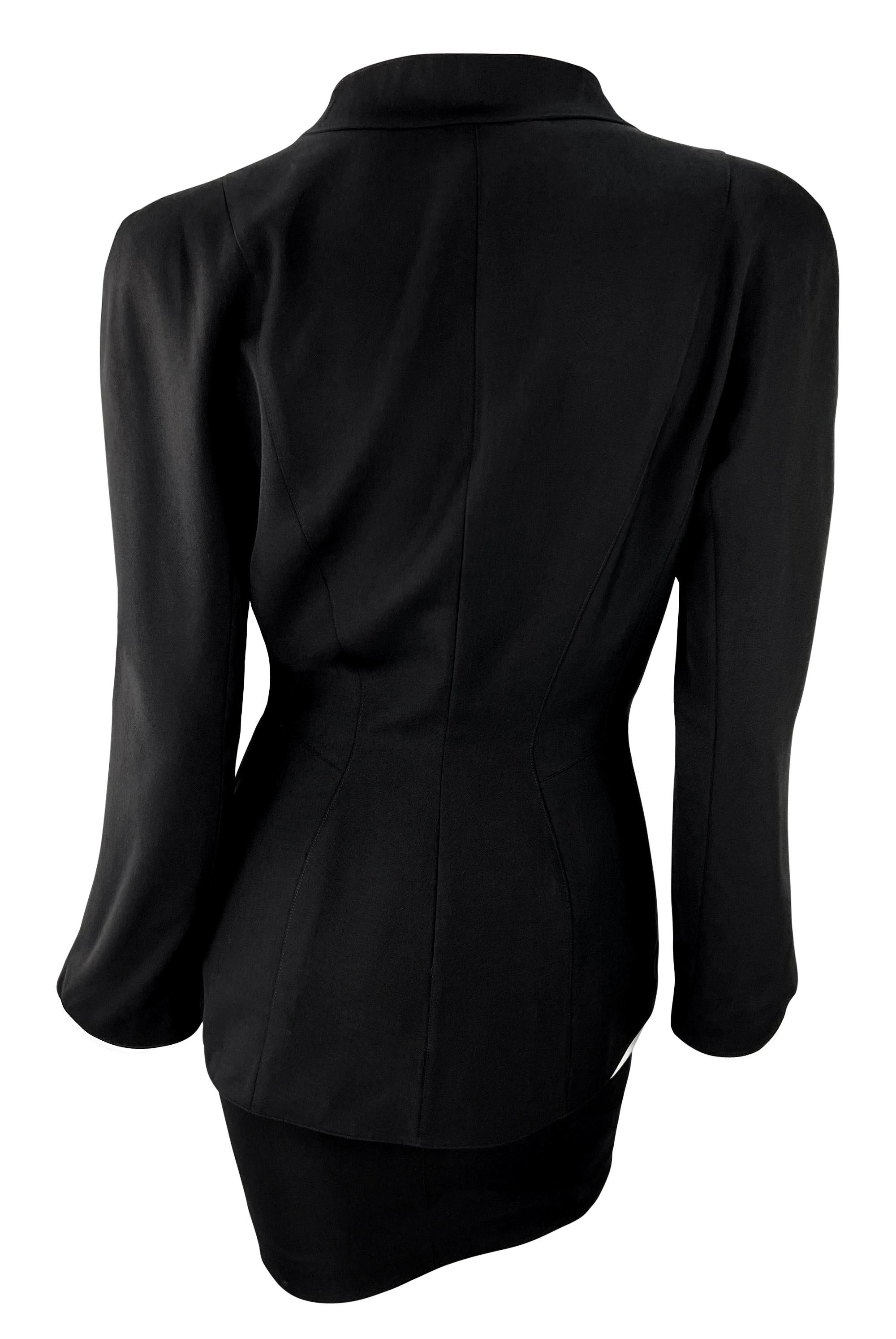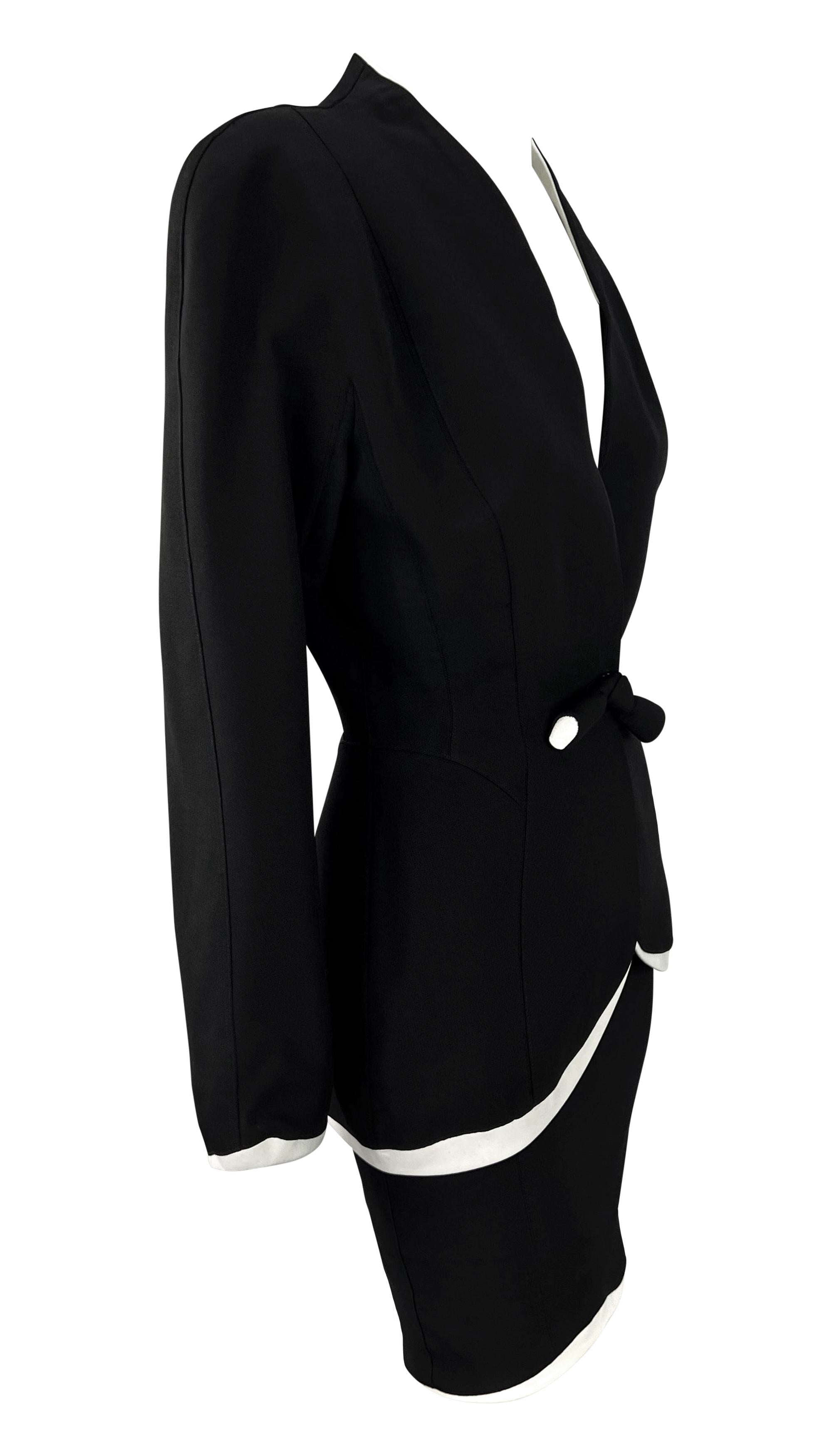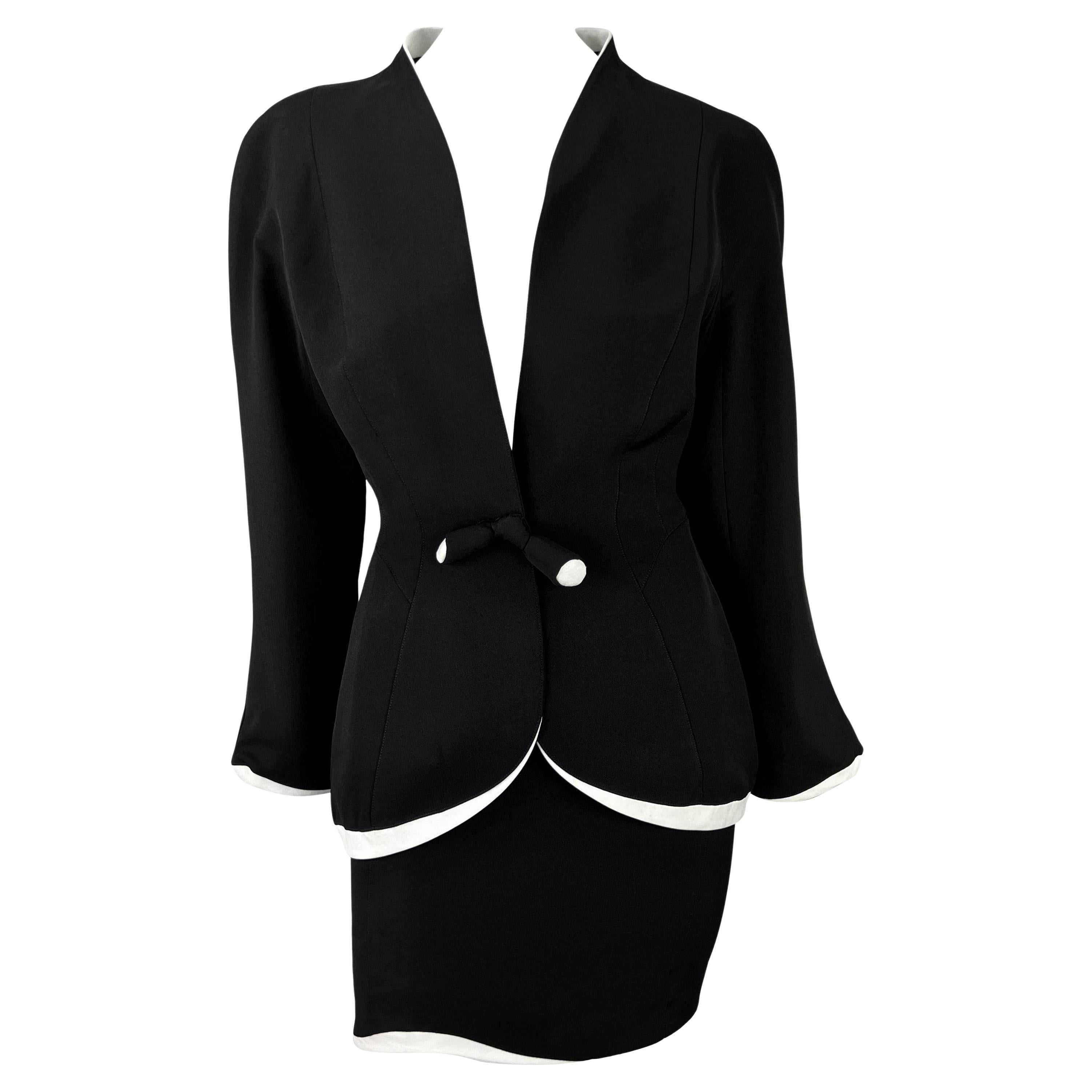 1990s Thierry Mugler Black White Sculpted Asymmetric Bow Skirt Suit
