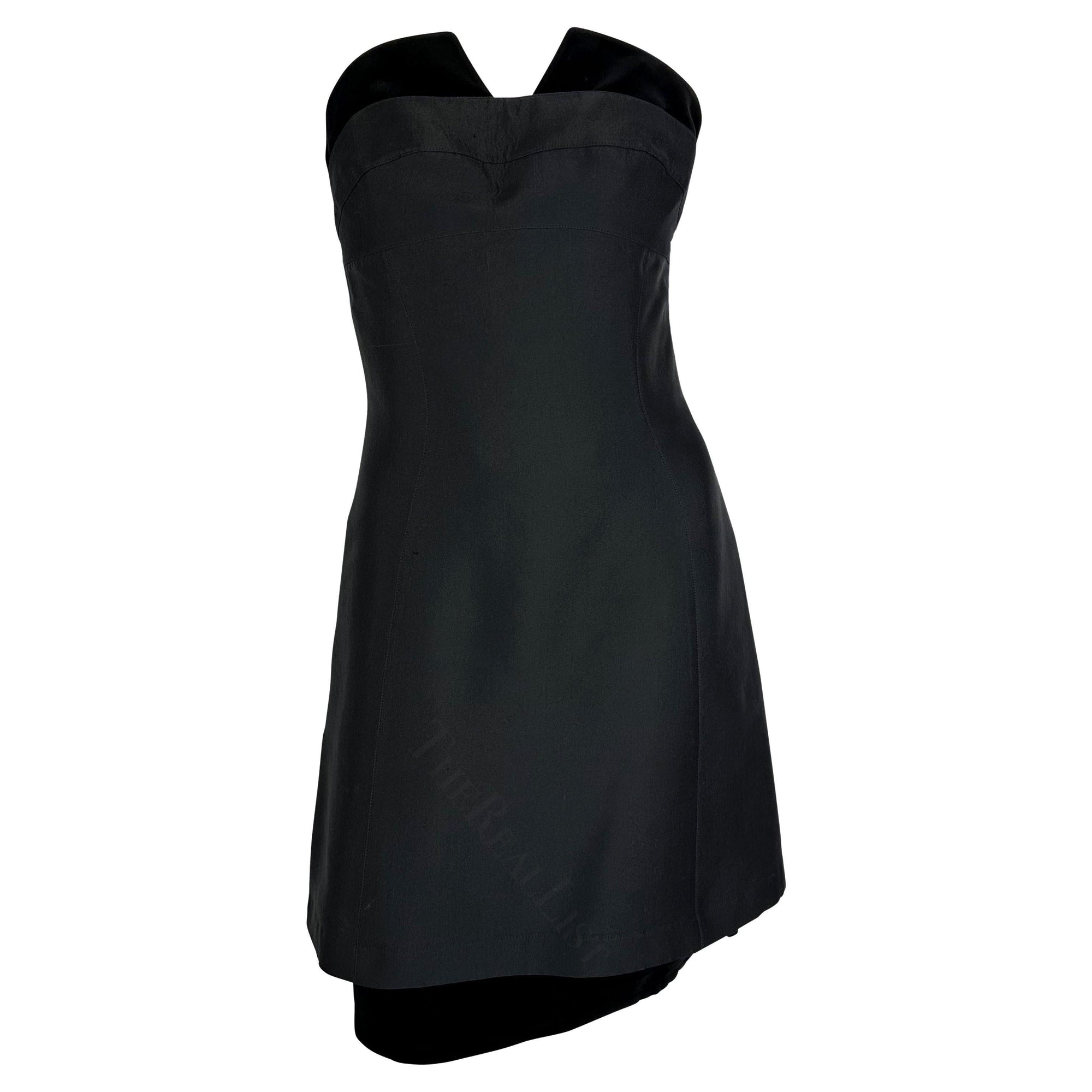 1990s Thierry Mugler Black Wool Strapless Velvet Accent Hourglass Mini Dress