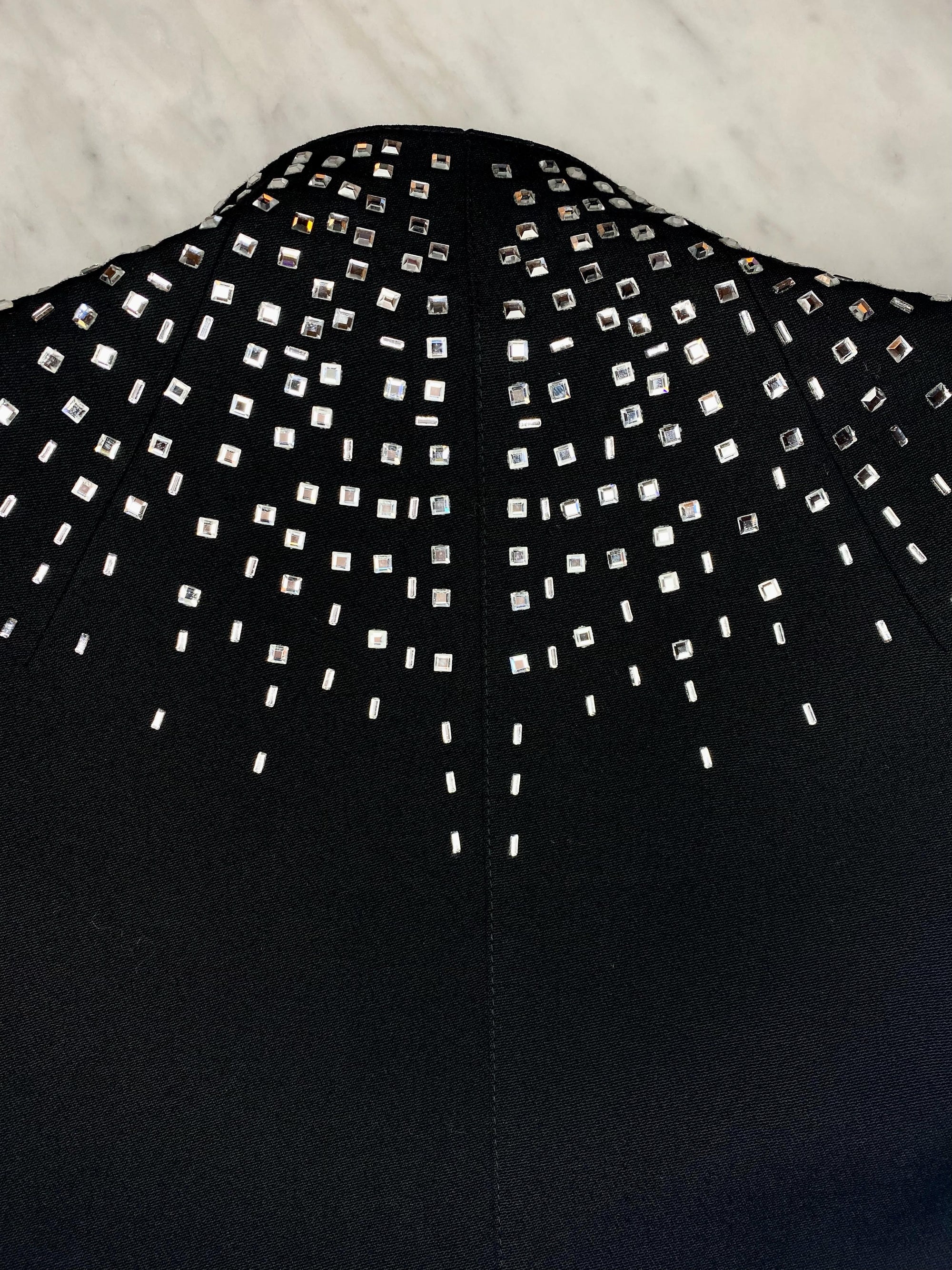 1990s Thierry Mugler Square Rhinestone Wide Leg Pantsuit