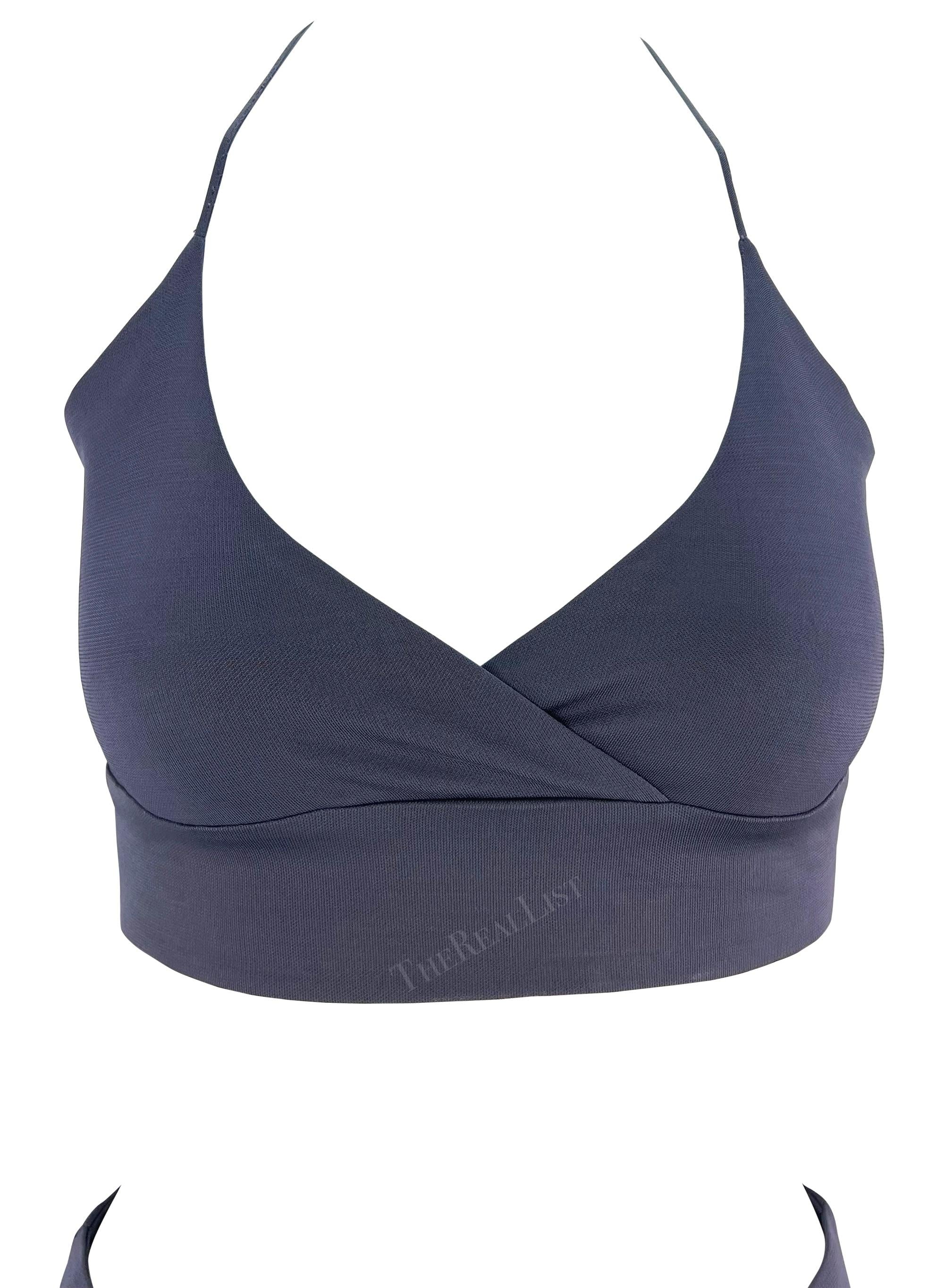 1990s Yigal Azrouël Grey Blue Stretch Halter Neck Bodycon Crop Top Skirt Set