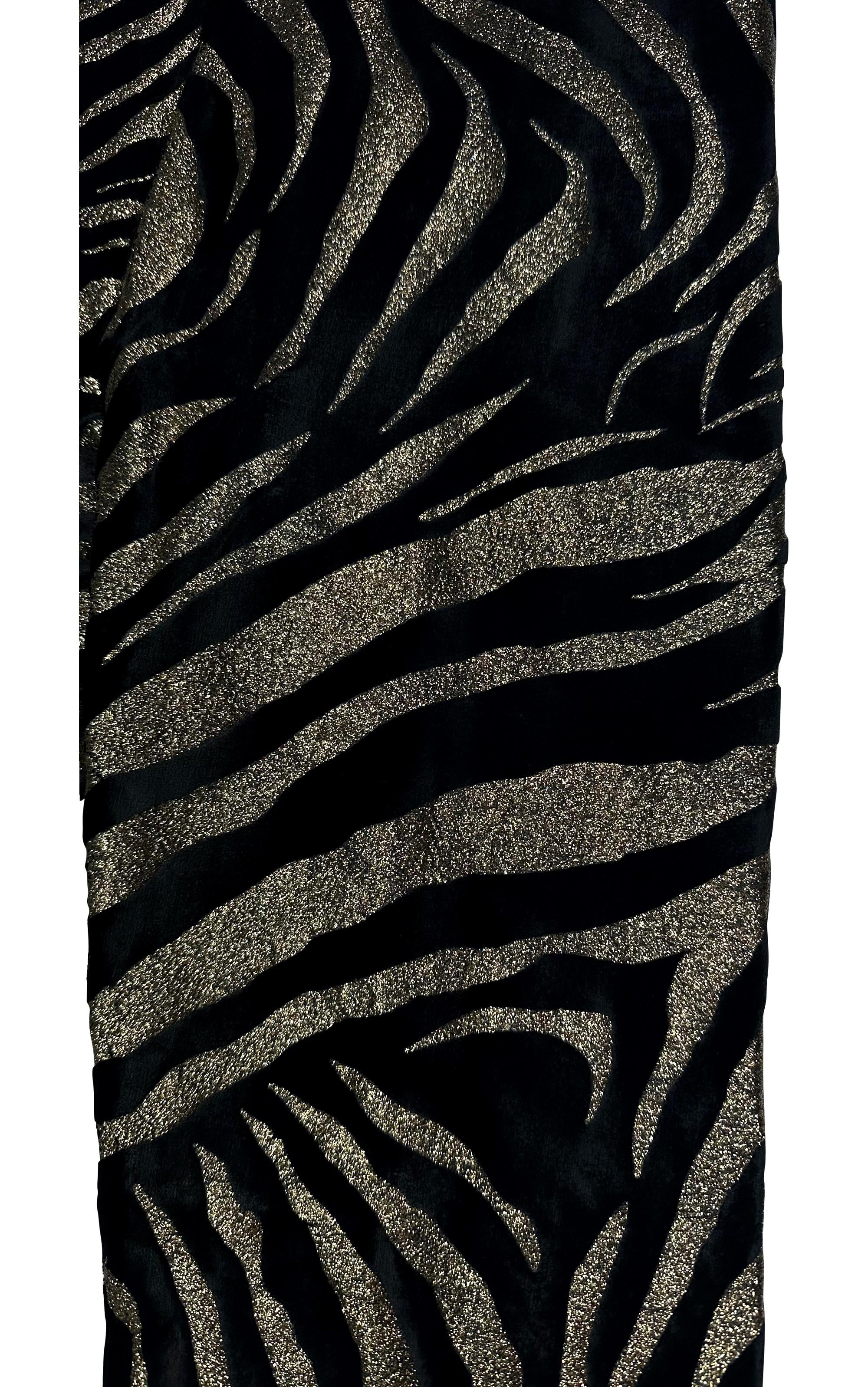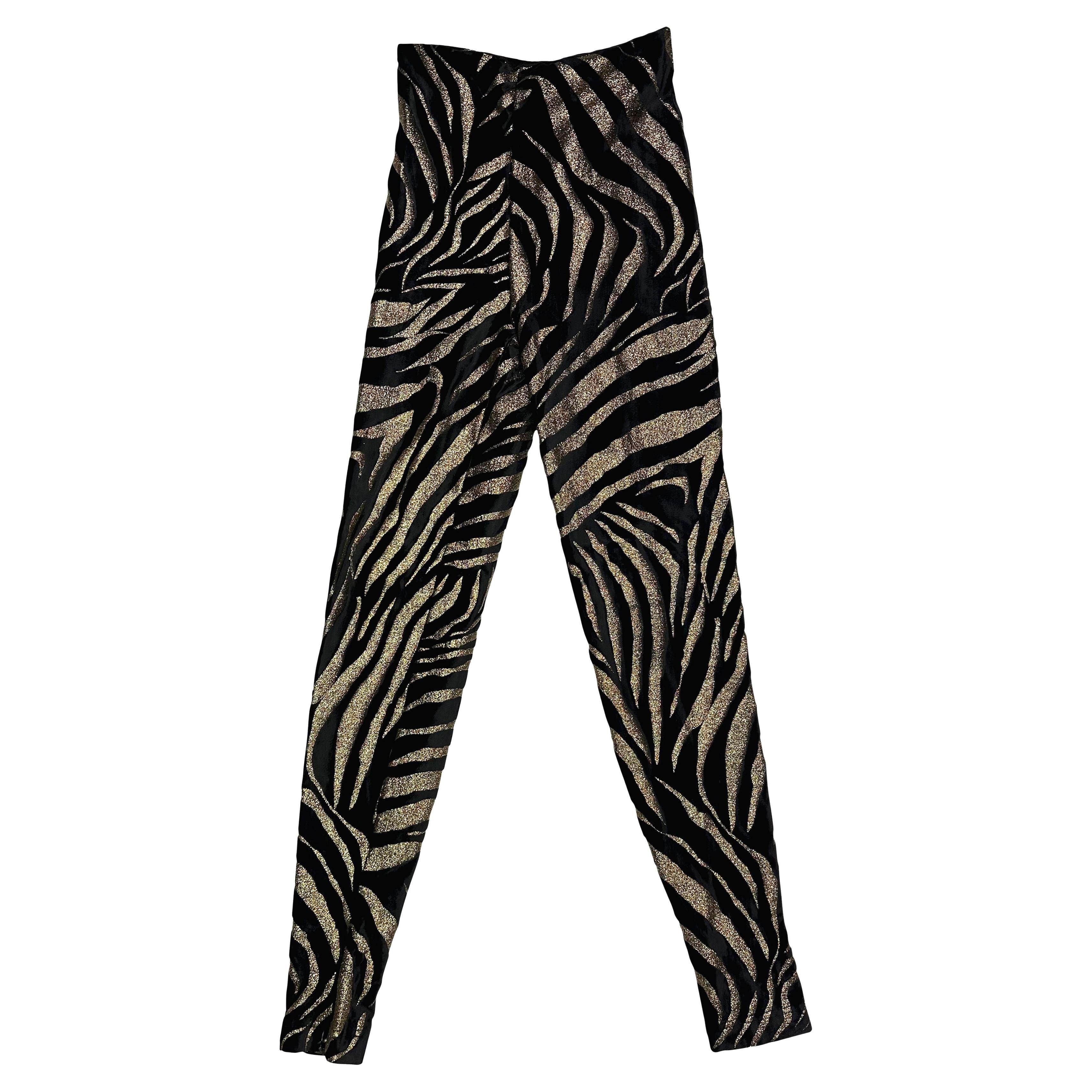 1992 Gianni Versace Gold Glitter Animal Pattern Stretch Black Velvet Leggings