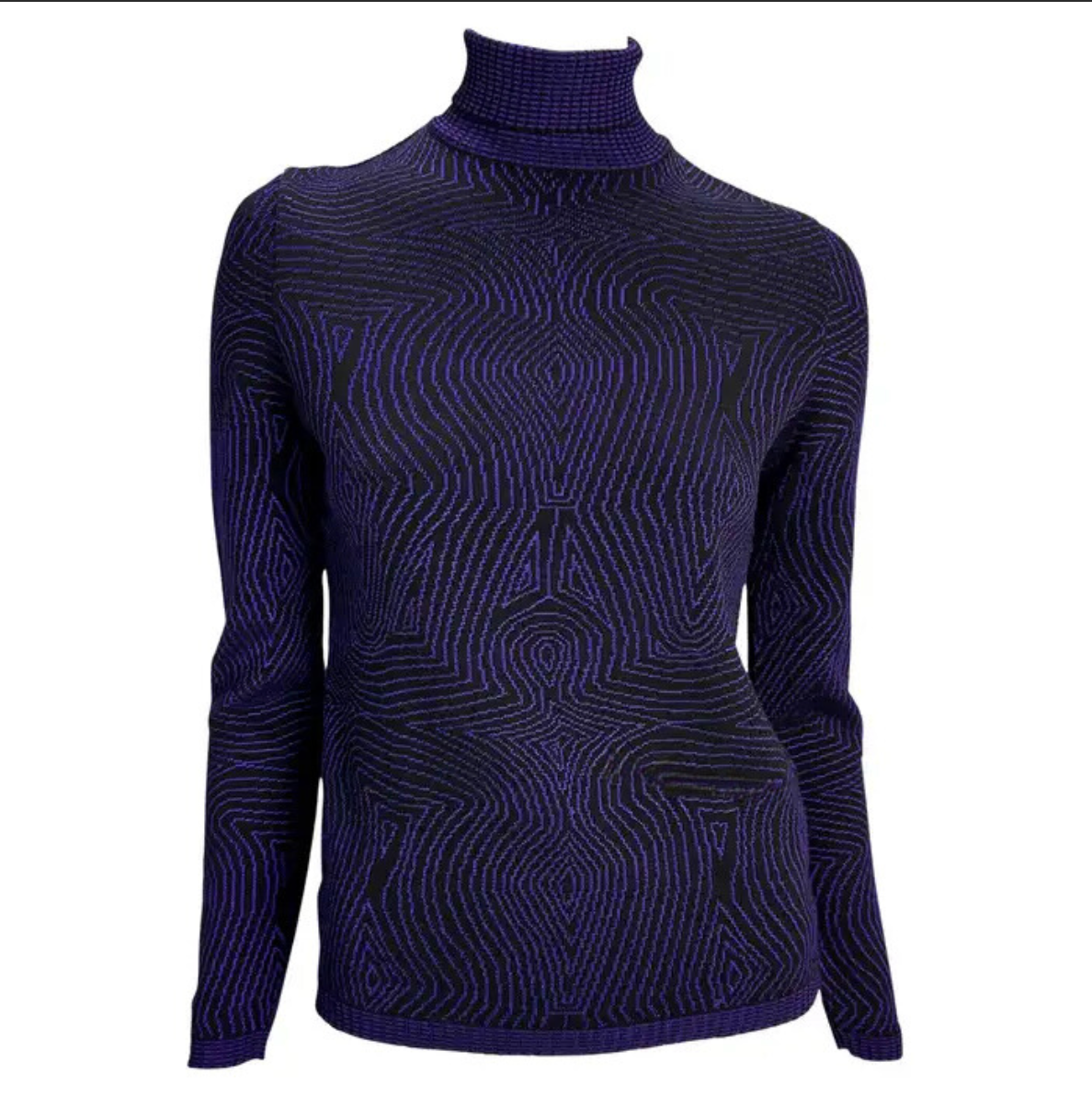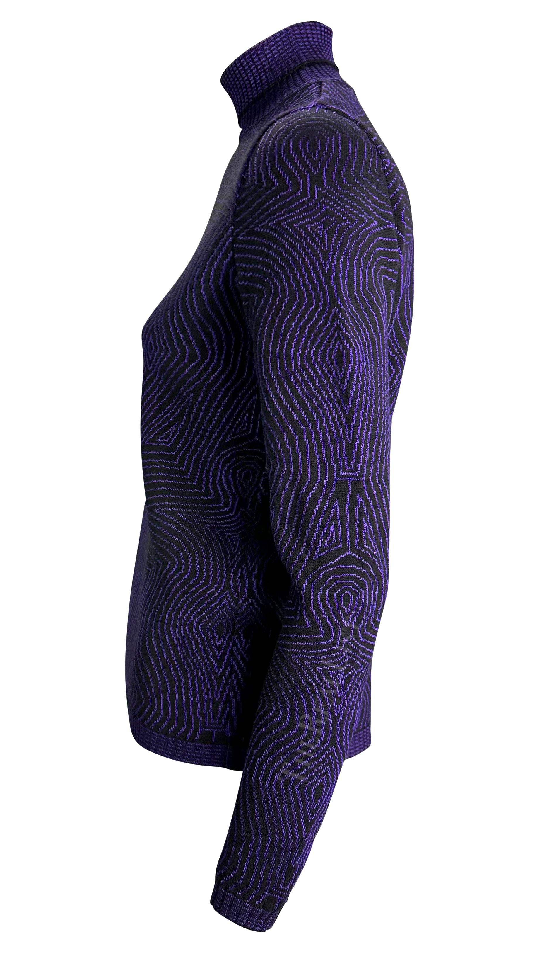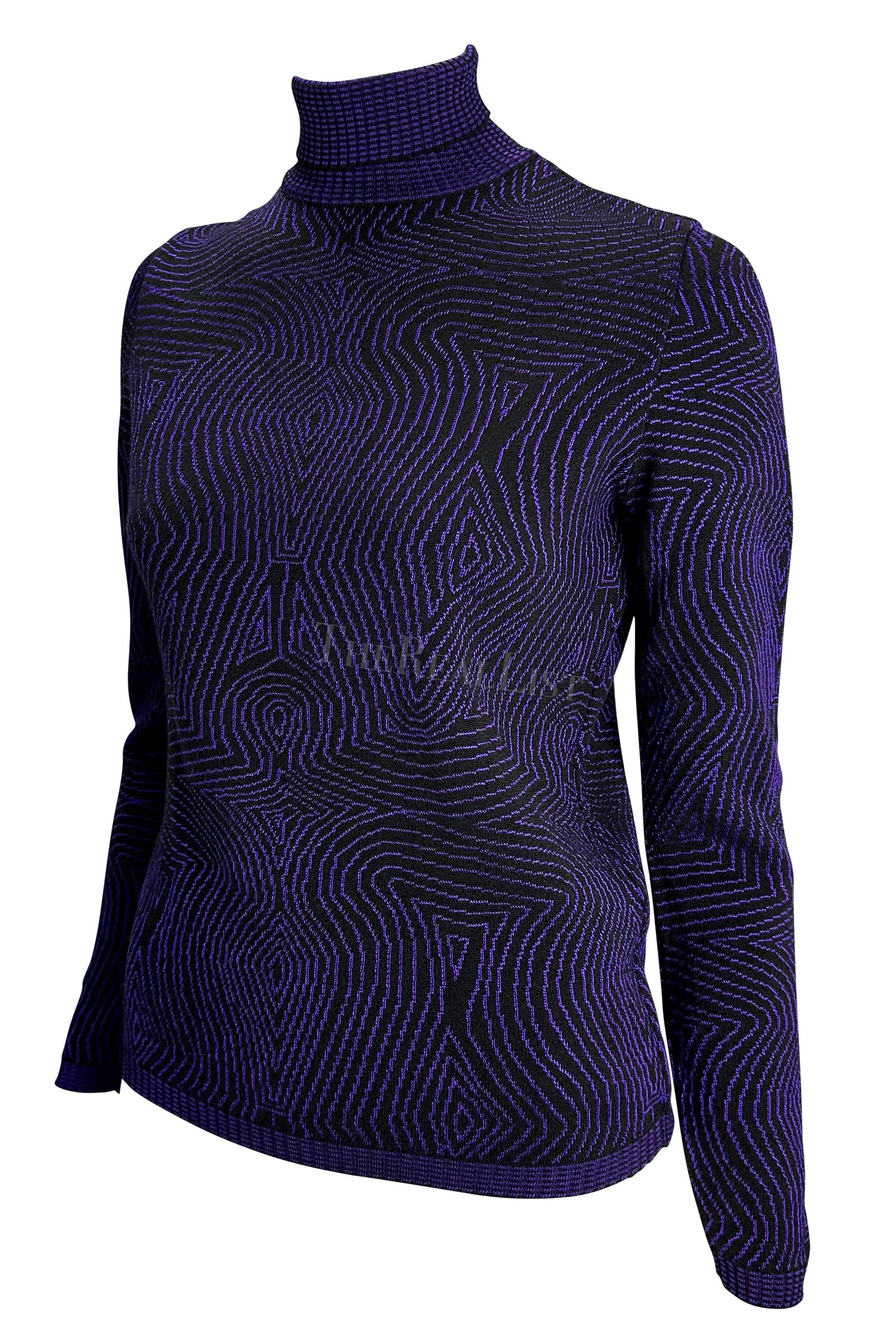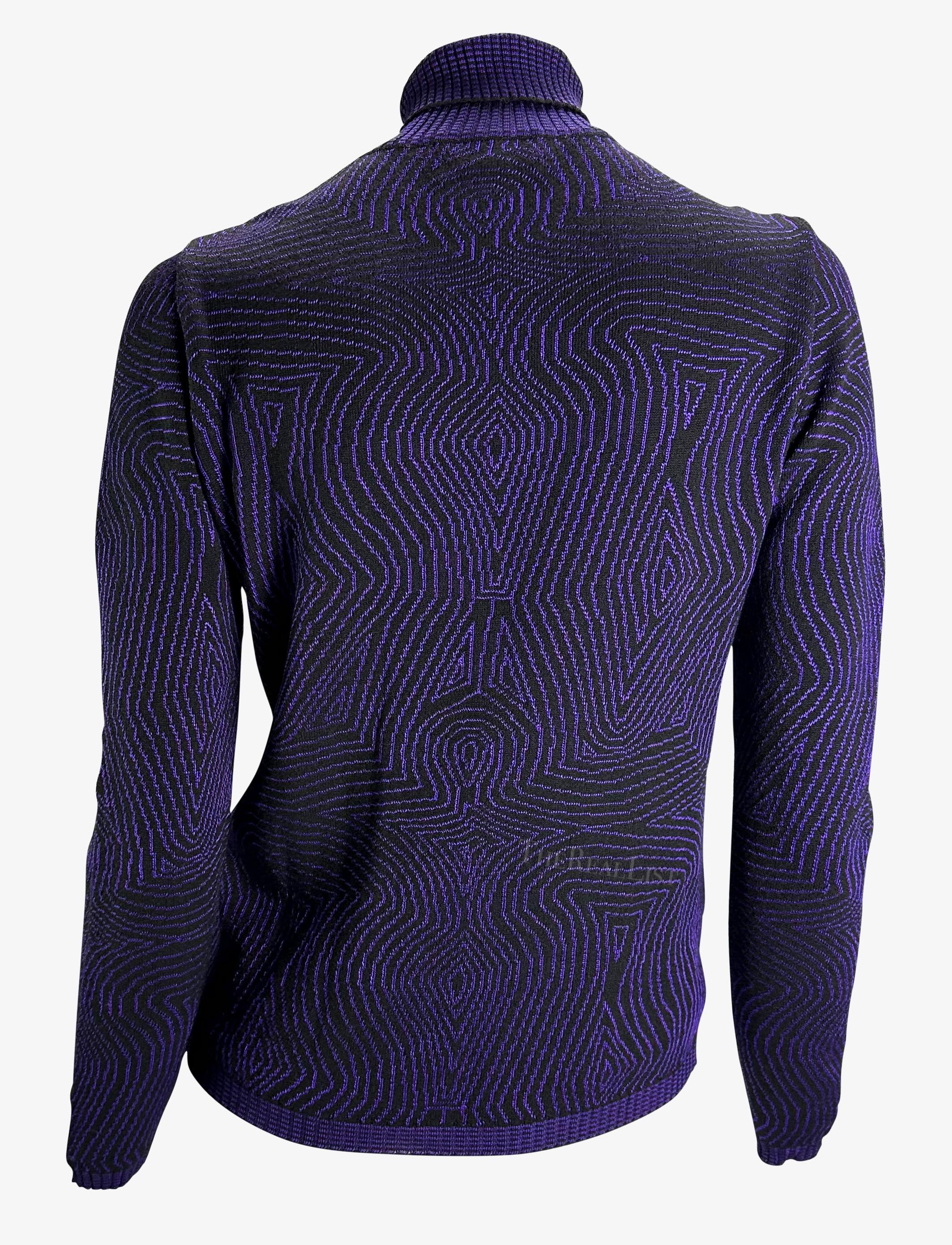 1996 Gianni Versace Purple Psychedelic Op Art Knit Roll-Neck Sweater Top