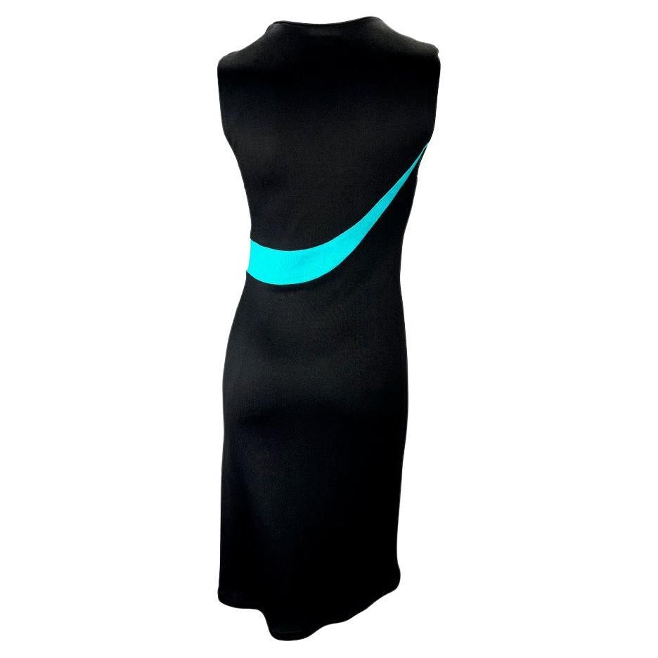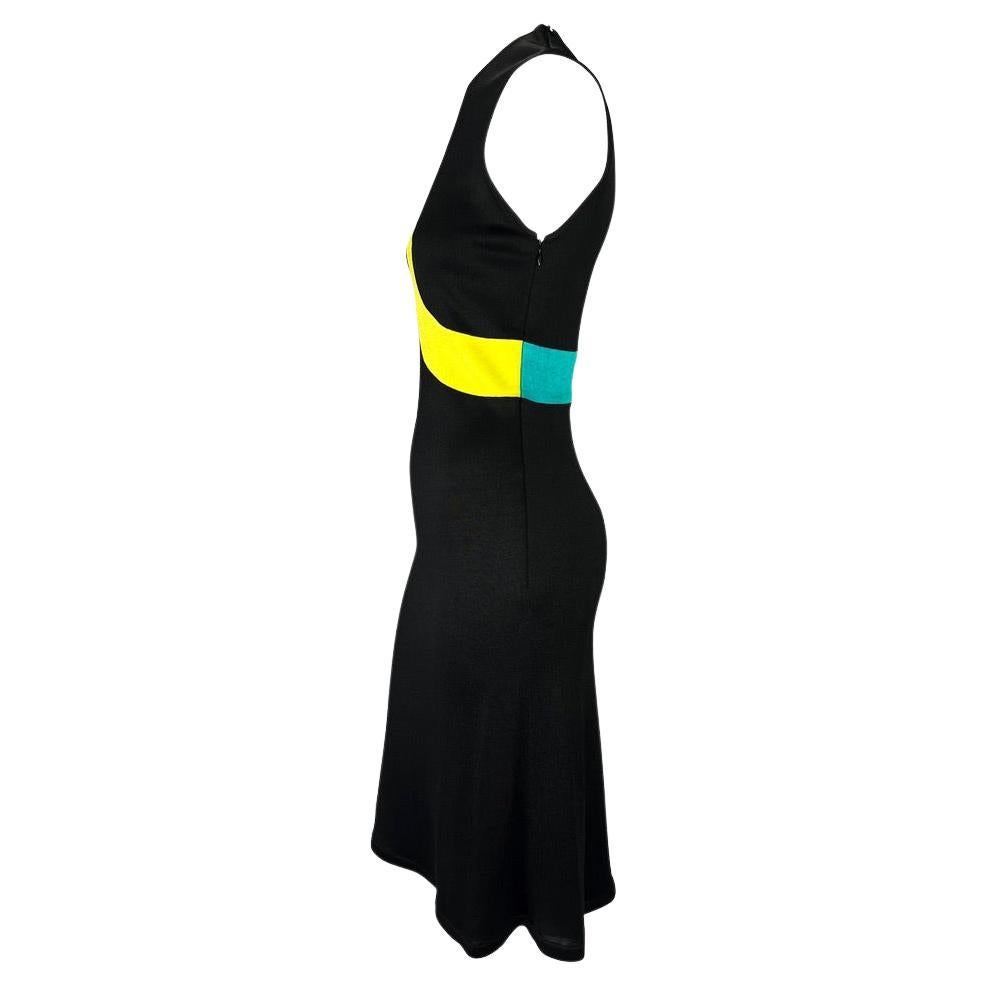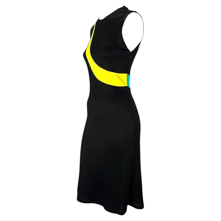 1997 Gianni Versace Black Stretch Knit Blue Yellow Stripe Sleeveless Dress